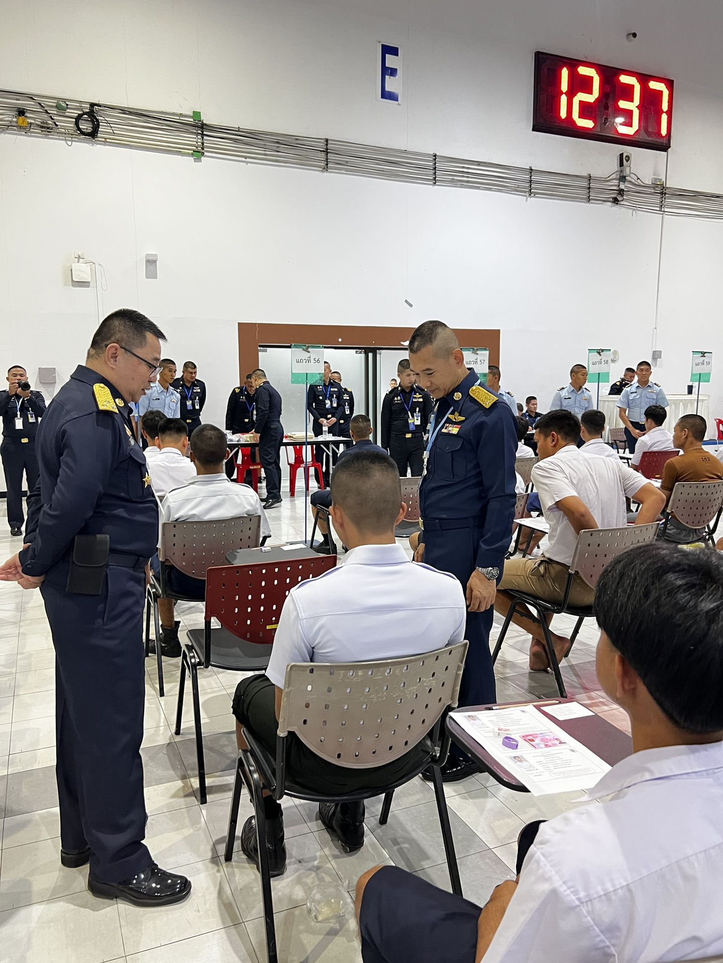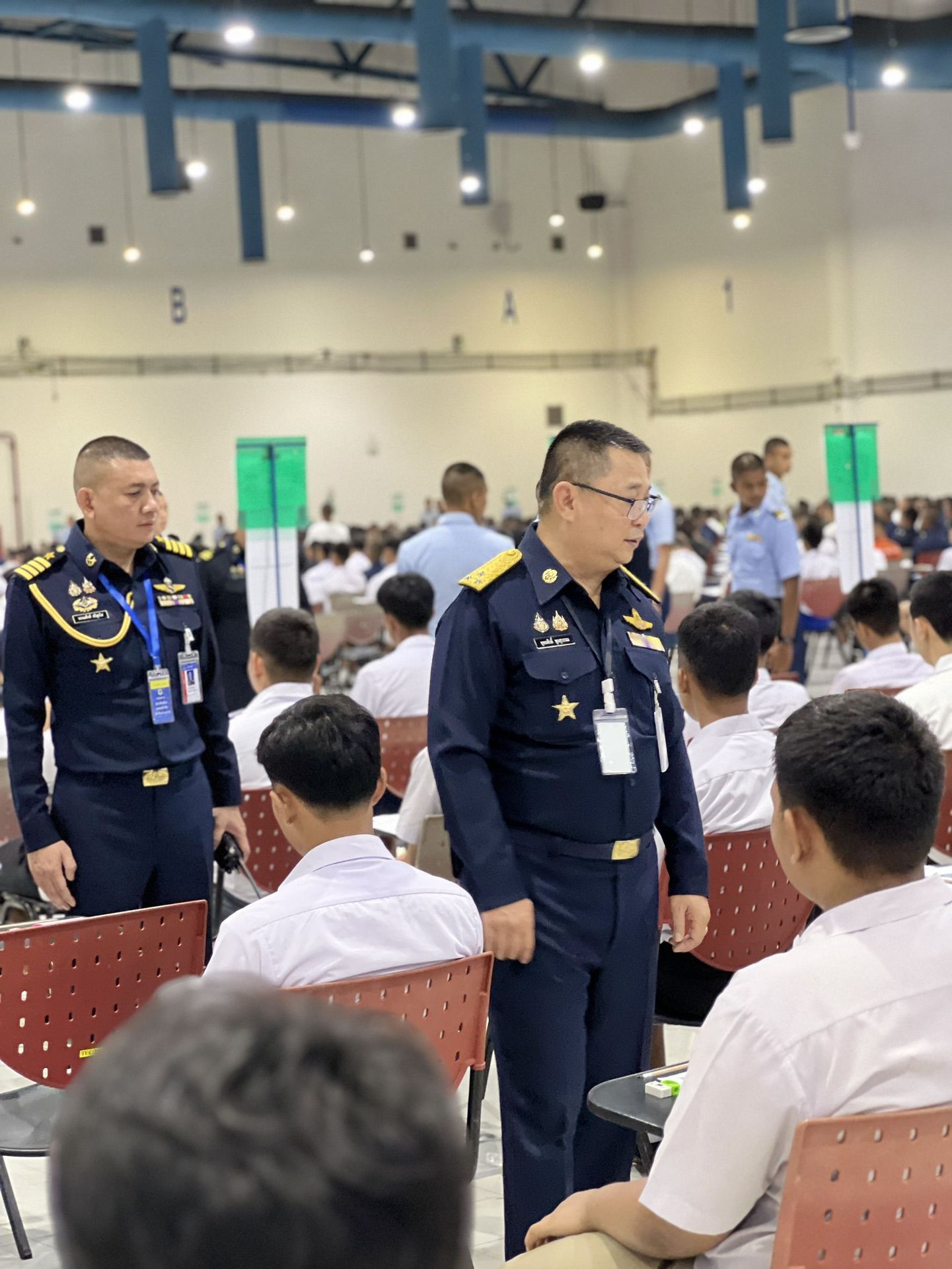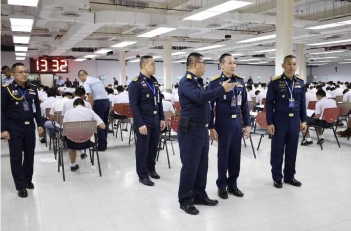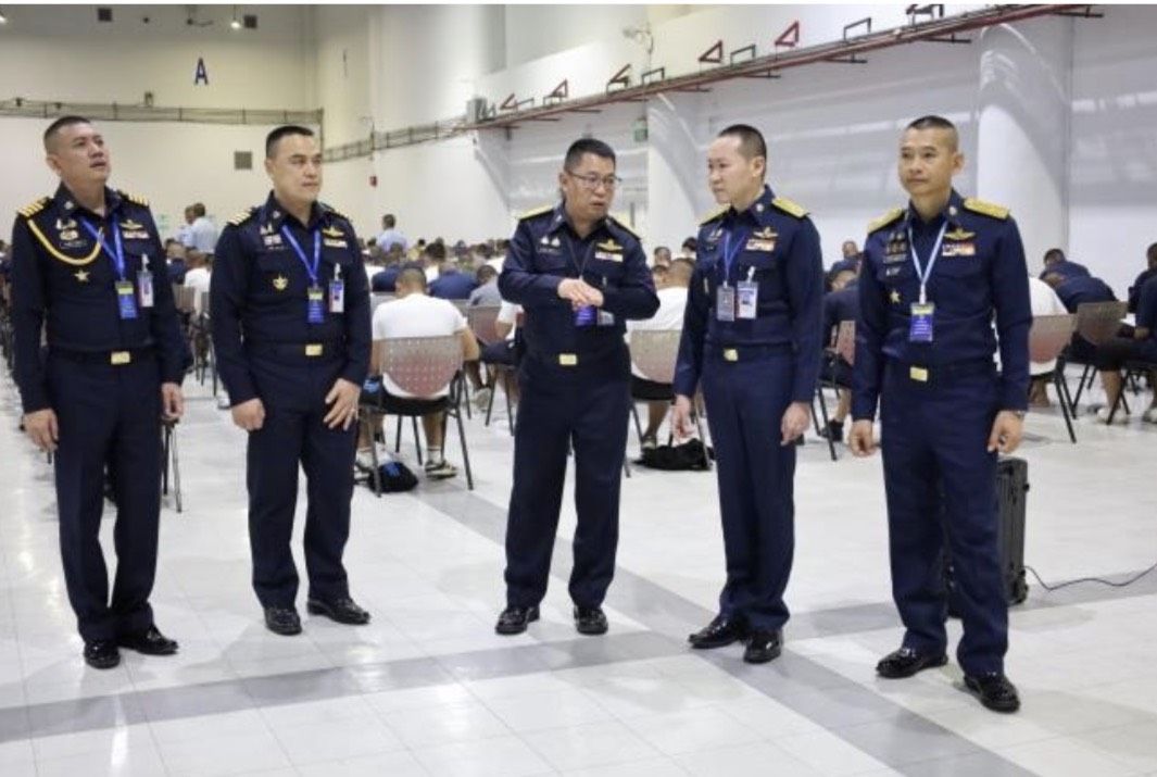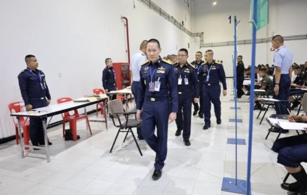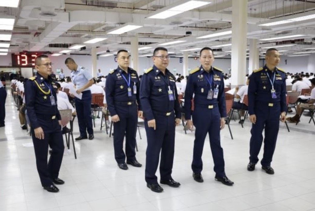 พลอากาศโท วิษณุ เนียมคำ รองเสนาธิการทหารอากาศ (สายงานกำลังพล) คณะกรรมการสอบคัดเลือกบุคคลเข้าเป็นนักเรียนจ่าอากาศ ประจำปีการศึกษา ๒๕๖๙ และ พลอากาศโท ยุทธศักดิ์ พูลสุวรรณ เจ้ากรมยุทธศึกษาทหารอากาศ ตรวจความเรียบร้อยการสอบภาควิชาการ และให้กำลังใจเจ้าหน้าที่ผู้ปฏิบัติงานในการควบคุมการสอบภาควิชาการให้เป็นไปด้วยความเรียบร้อย เมื่อวัน อาทิตย์ที่ ๑๕ กุมภาพันธ์ ๒๕๖๙ ณ ศูนย์สอบมหาวิทยาลัยธรรมศาสตร์ (ศูนย์รังสิต)
