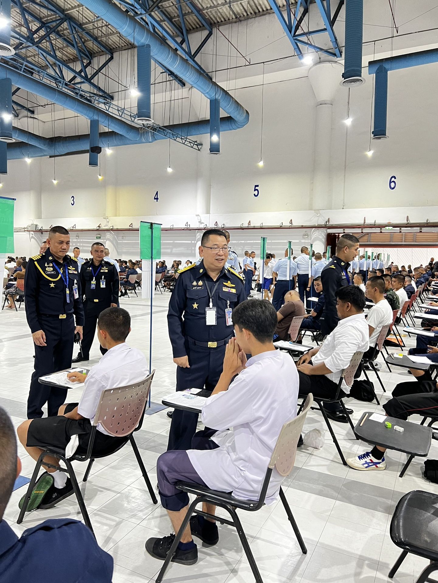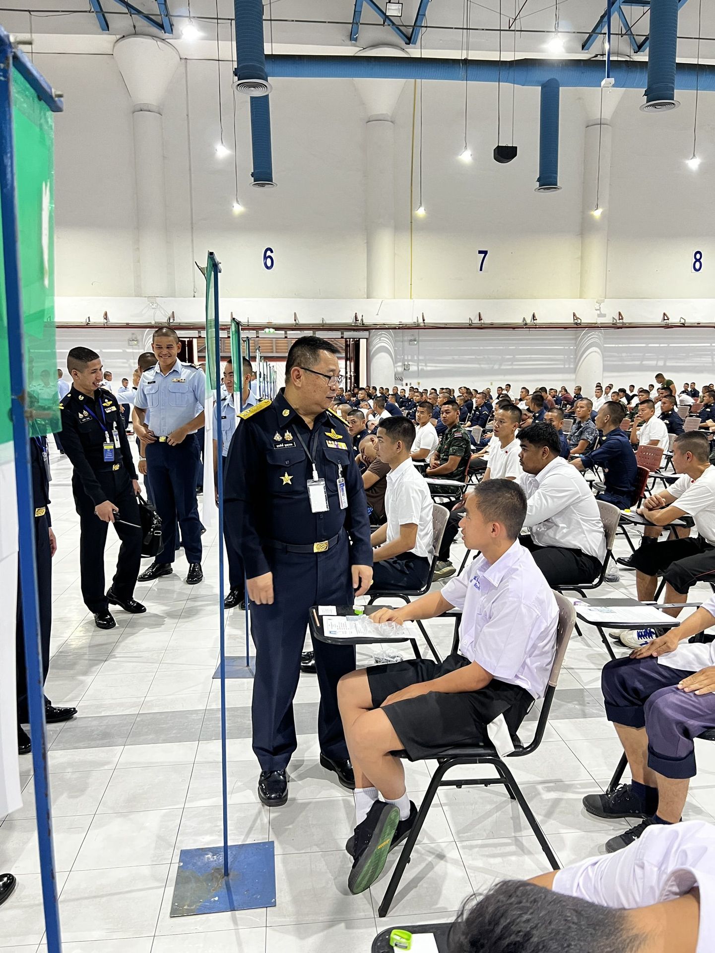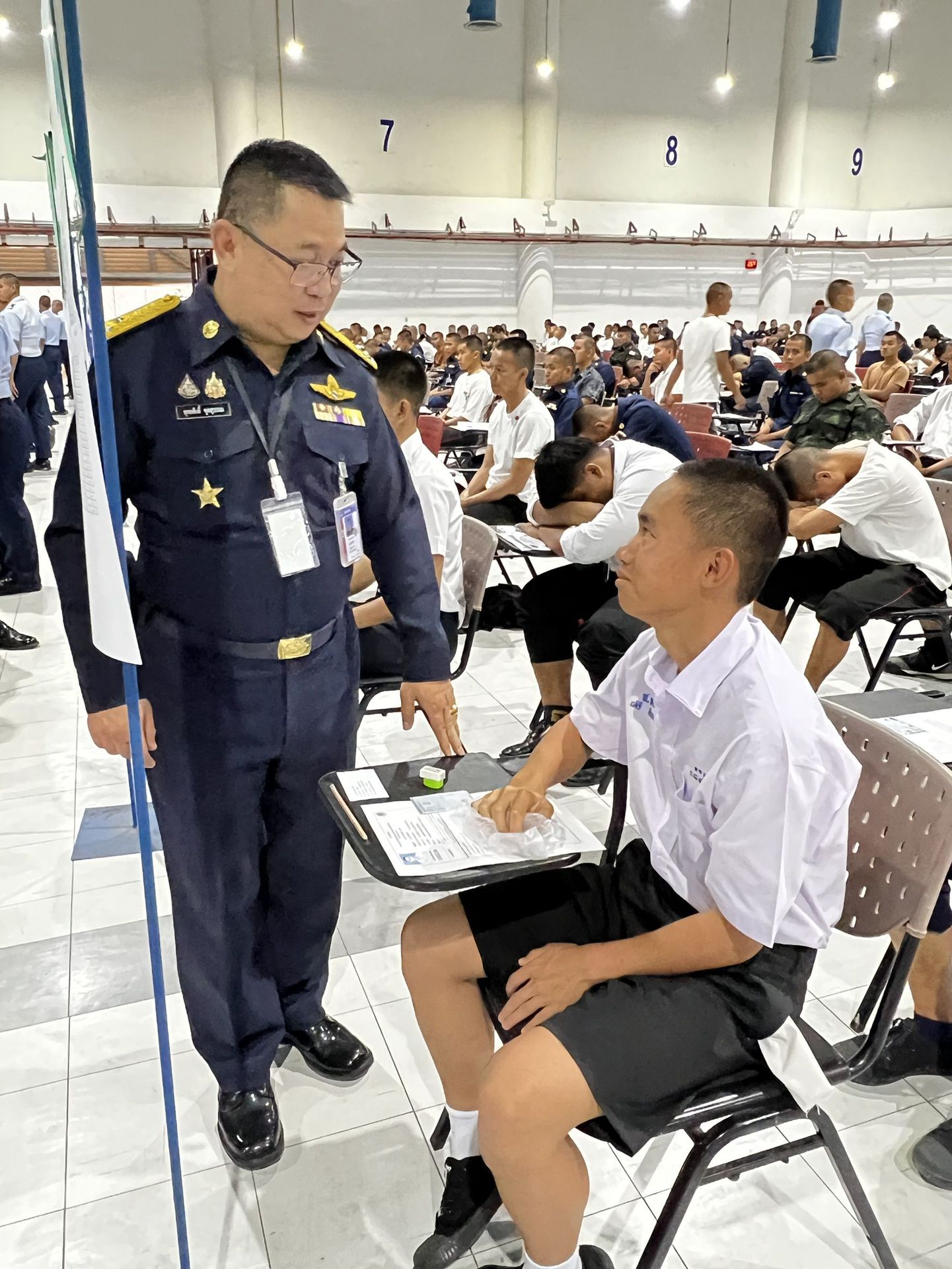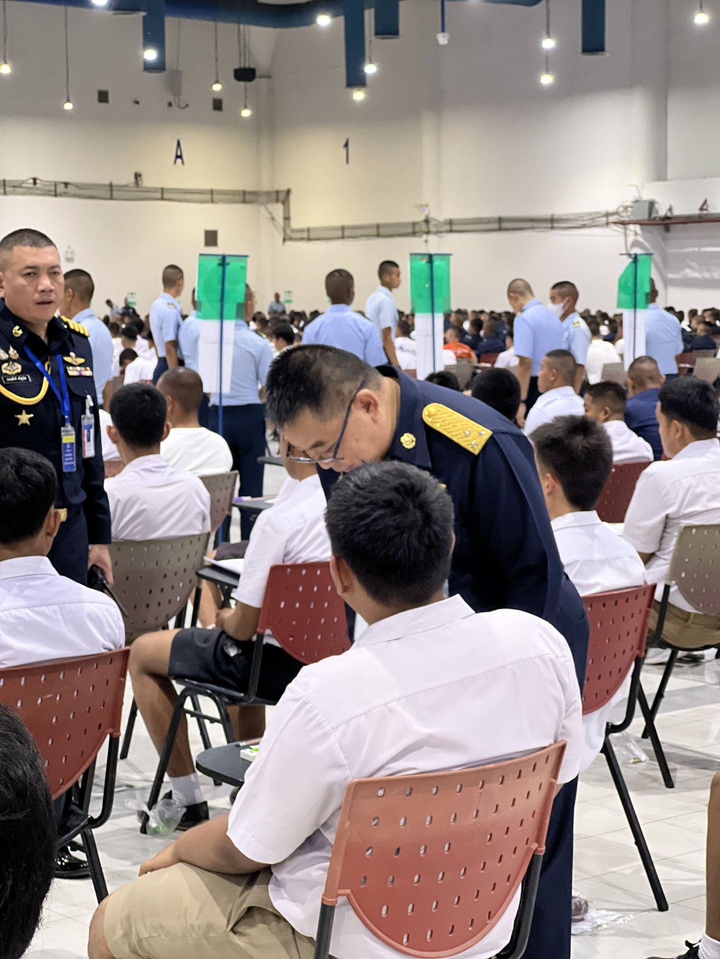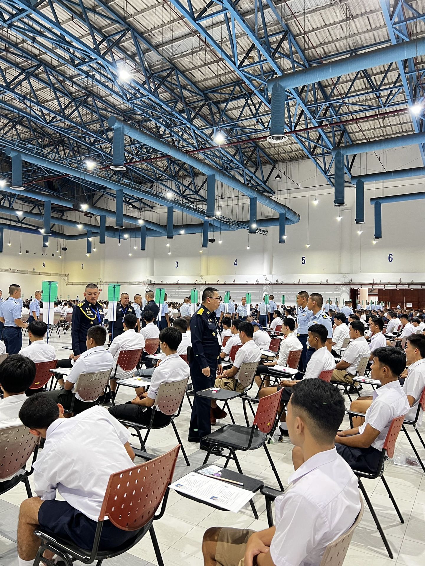 พลอากาศโท วิษณุ เนียมคำ รองเสนาธิการทหารอากาศ (สายงานกำลังพล) คณะกรรมการสอบคัดเลือกบุคคลเข้าเป็นนักเรียนจ่าอากาศ ประจำปีการศึกษา ๒๕๖๙ และ พลอากาศโท ยุทธศักดิ์ พูลสุวรรณ เจ้ากรมยุทธศึกษาทหารอากาศ ตรวจความเรียบร้อยการสอบภาควิชาการ และให้กำลังใจเจ้าหน้าที่ผู้ปฏิบัติงานในการควบคุมการสอบภาควิชาการให้เป็นไปด้วยความเรียบร้อย เมื่อวัน อาทิตย์ที่ ๑๕ กุมภาพันธ์ ๒๕๖๙ ณ ศูนย์สอบมหาวิทยาลัยธรรมศาสตร์ (ศูนย์รังสิต)