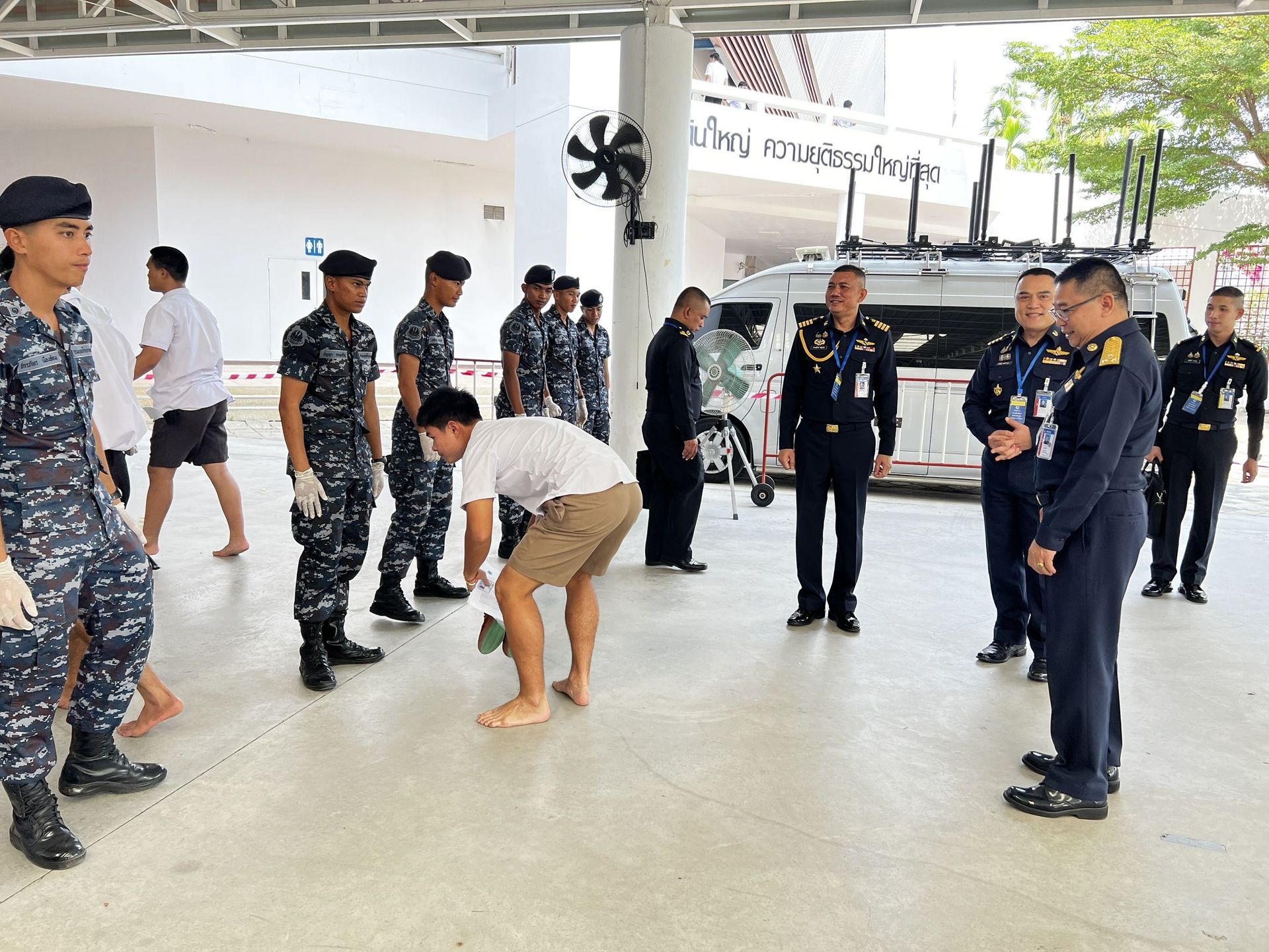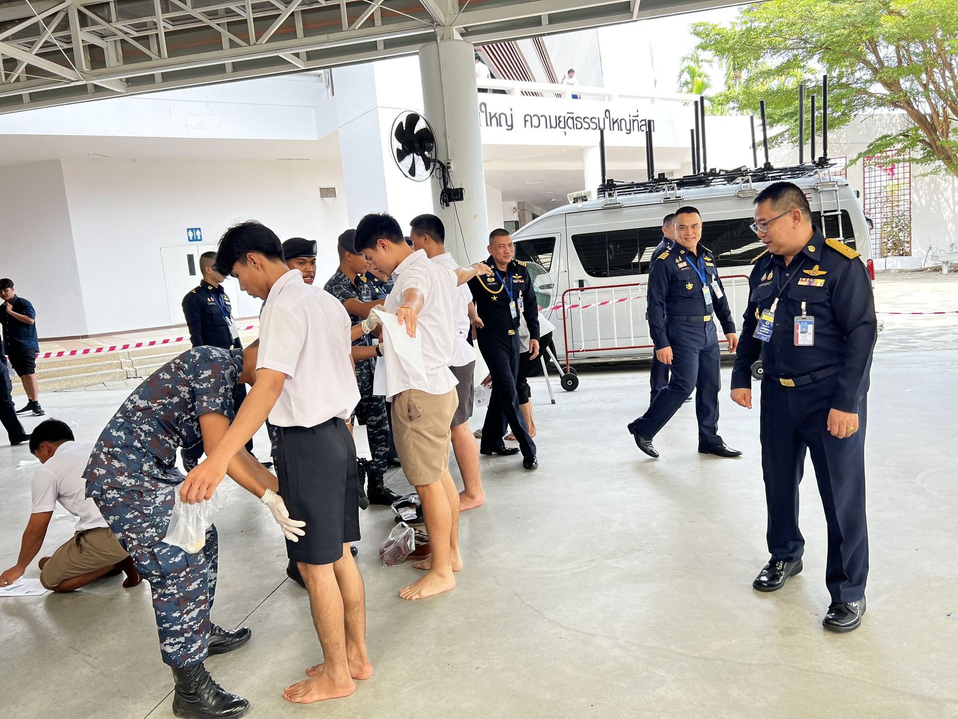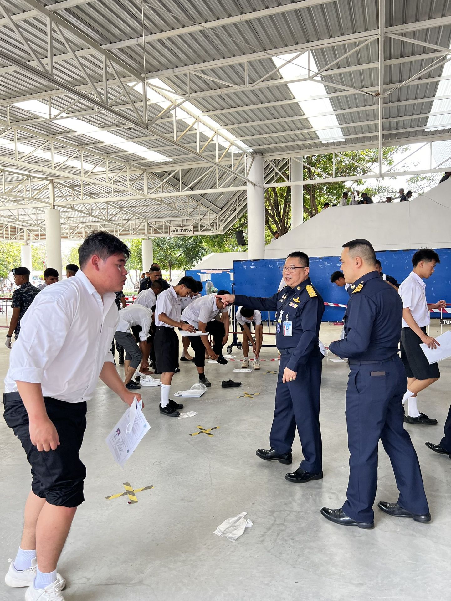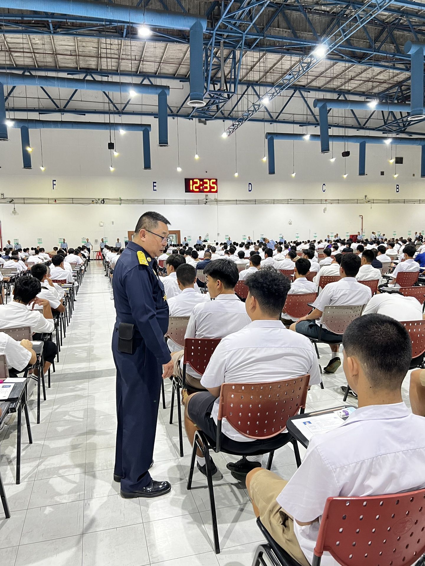 พลอากาศโท วิษณุ เนียมคำ รองเสนาธิการทหารอากาศ (สายงานกำลังพล) คณะกรรมการสอบคัดเลือกบุคคลเข้าเป็นนักเรียนจ่าอากาศ ประจำปีการศึกษา ๒๕๖๙ และ พลอากาศโท ยุทธศักดิ์ พูลสุวรรณ เจ้ากรมยุทธศึกษาทหารอากาศ ตรวจความเรียบร้อยการสอบภาควิชาการ และให้กำลังใจเจ้าหน้าที่ผู้ปฏิบัติงานในการควบคุมการสอบภาควิชาการให้เป็นไปด้วยความเรียบร้อย เมื่อวัน อาทิตย์ที่ ๑๕ กุมภาพันธ์ ๒๕๖๙ ณ ศูนย์สอบมหาวิทยาลัยธรรมศาสตร์ (ศูนย์รังสิต)