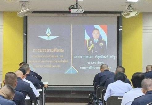 นาวาอากาศเอก พิสุทธิพงศ์ ศรีชูรส รองเสนาธิการ กรมยุทธศึกษาทหารอากาศ (สายงานการศึกษา) บรรยายพิเศษ เรื่องการปรับตัวของกำลังพลกองทัพอากาศในยุคแห่งความท้าทายทางเทคโนโลยีและความเปลี่ยนแปลง เพื่อเป็นถ่ายทอดประสบการณ์ และเสริมสร้างความรู้ความเข้าใจให้กับนายทหารชั้นประทวน ในด้านการ พัฒนากำลังพล ตามเจตนารมย์ของผู้บัญชาการทหารอากาศ ในหลักสูตรนายทหารประทวนชั้นพันจ่าอากาศอาวุโสรุ่นที่ ๑๒ เมื่อวันจันทร์ที่ ๑๗ พฤศจิกายน ๒๕๖๘ ณ ห้องบรรยาย โรงเรียนนายทหารชั้นประทวน กรมยุทธศึกษาทหารอากาศ