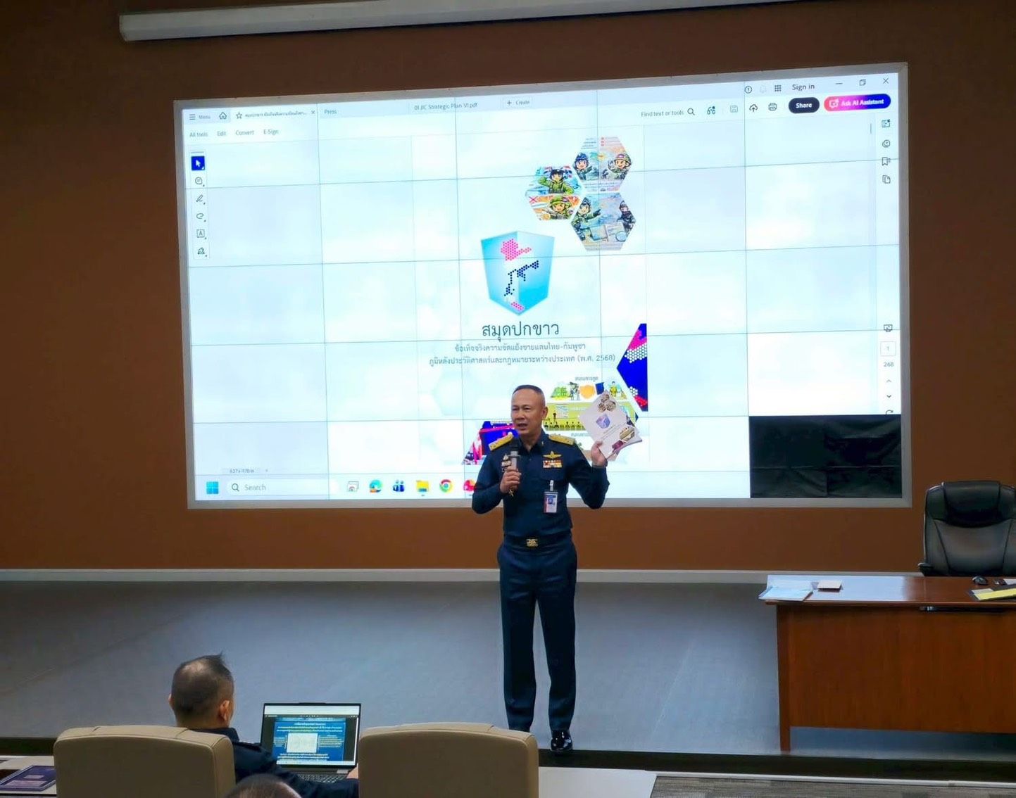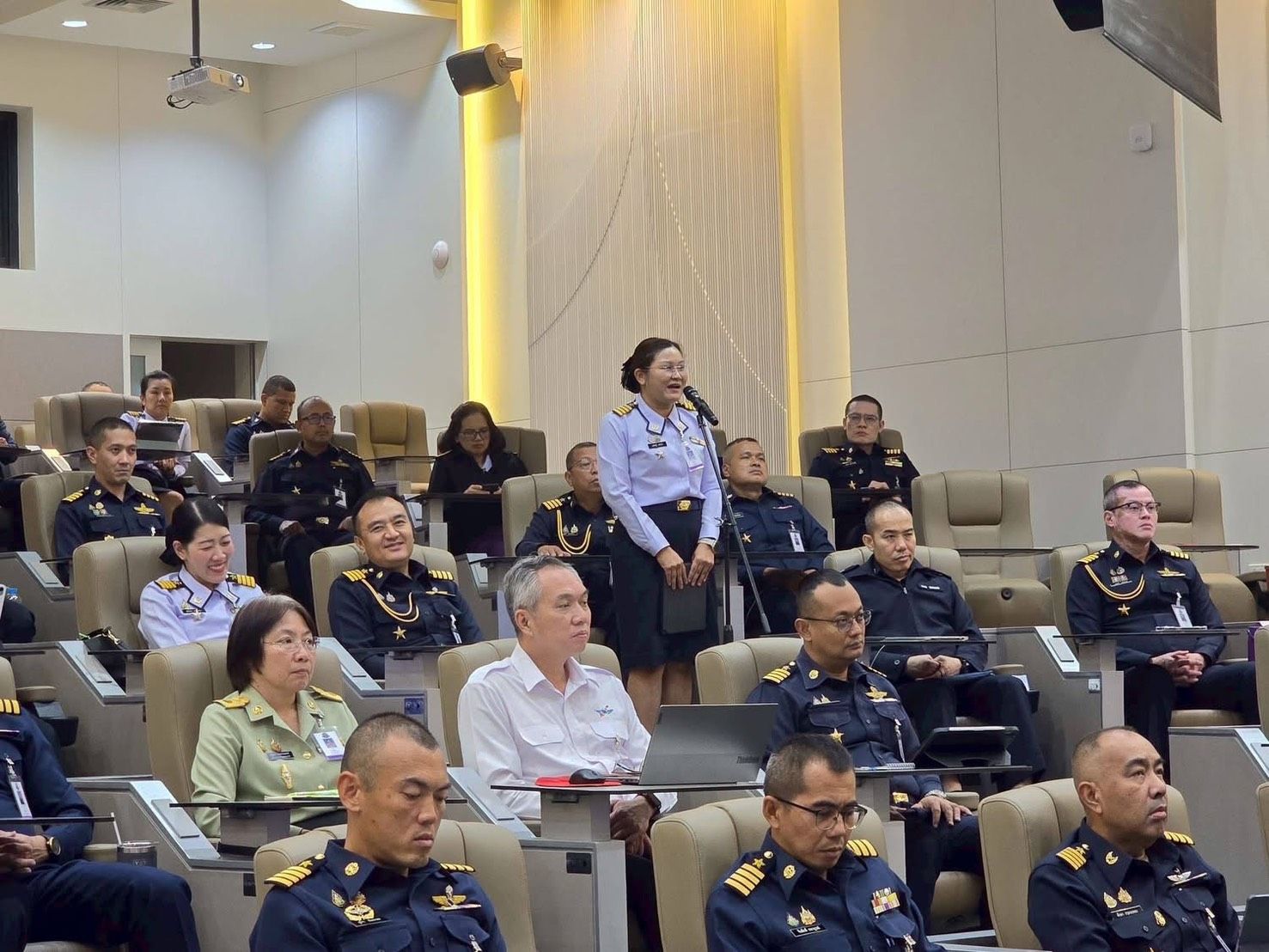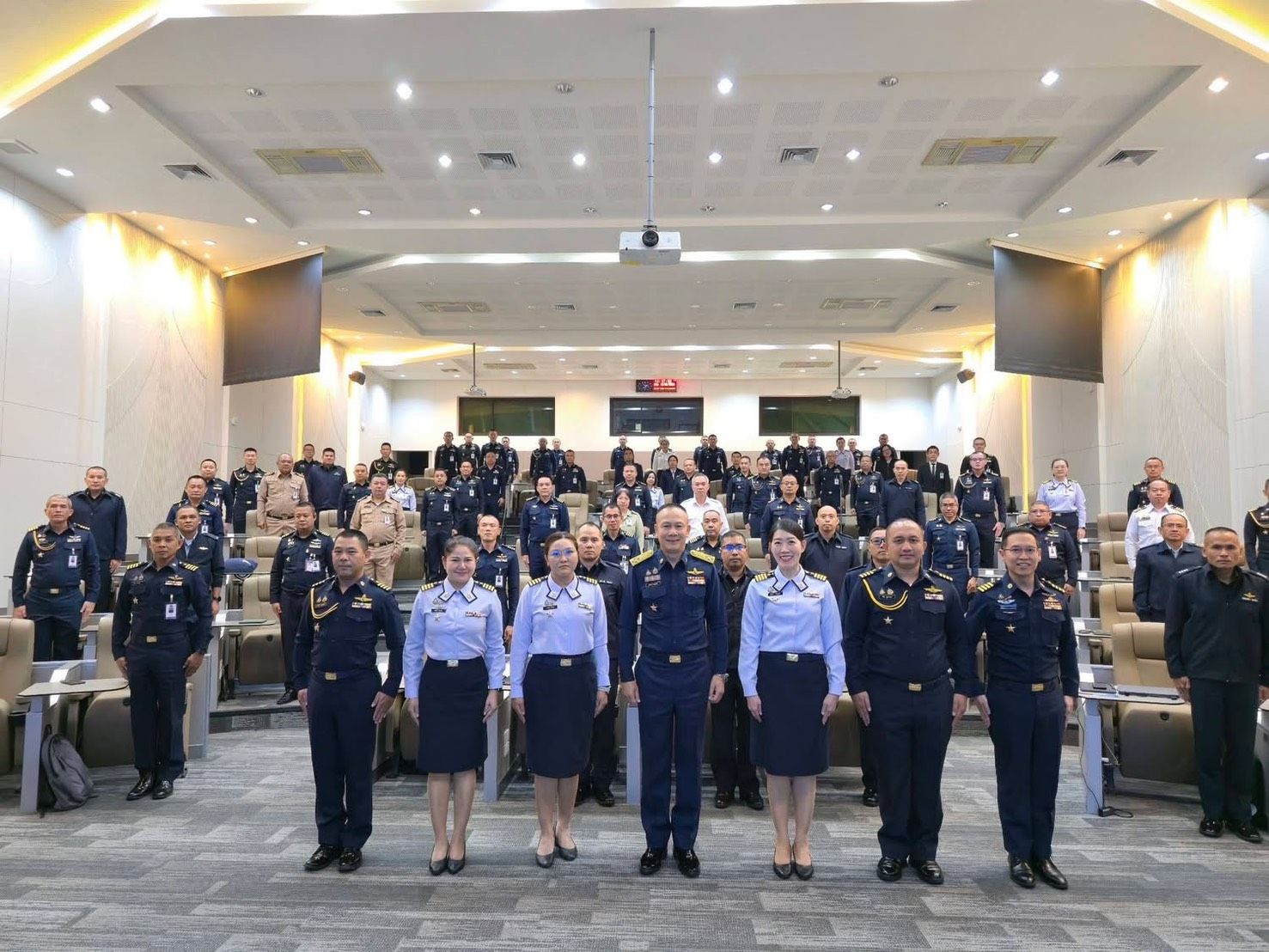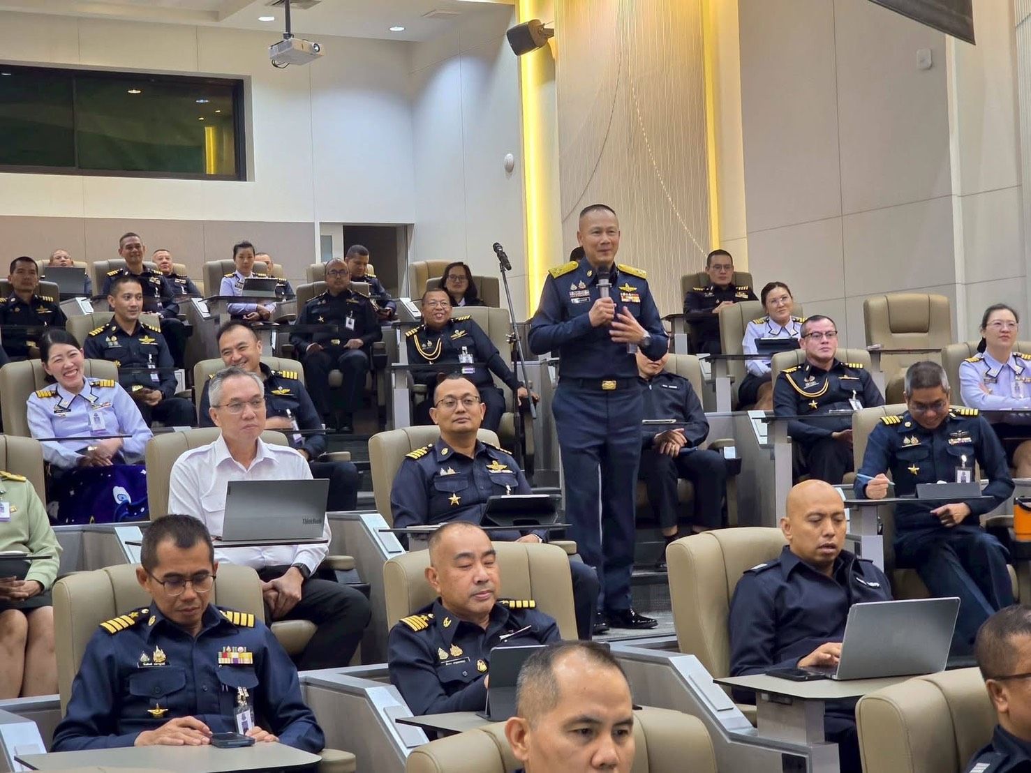 พลอากาศตรี ประภาส ศรีประเสริฐ รองเจ้ากรมยุทธศึกษาทหารอากาศ (สายงานการศึกษา) พร้อมคณะผู้บังคับบัญชากรมยุทธศึกษาทหารอากาศ ผู้บัญชาการวิทยาลัยการทัพอากาศ และคณะอาจารย์ ให้การต้อนรับ พลอากาศเอก ประภาส สอนใจดี ผู้ช่วยผู้บัญชาการทหารอากาศ (สายงานกิจการพิเศษ) บรรยายพิเศษ “การแถลงสถานการณ์ชายแดนไทย–กัมพูชา” เสริมศักยภาพผู้นำยุทธศาสตร์ในยุคข้อมูลหนาแน่นและความมั่นคงซับซ้อน เมื่อวันพฤหัสบดีที่ ๑๒ กุมภาพันธ์ ๒๕๖๙ แก่นักศึกษาหลักสูตรการทัพอากาศ รุ่นที่ ๖๐ จำนวน ๘๗ นาย ณ วิทยาลัยการทัพอากาศ กรมยุทธศึกษาทหารอากาศ