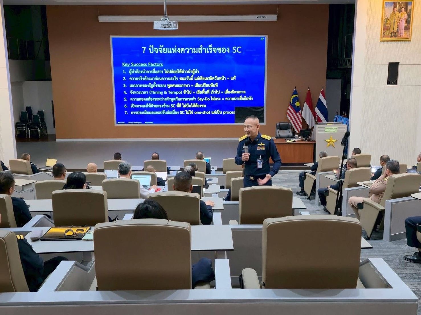 สาระสำคัญของการบรรยาย มุ่งเน้นเสริมสร้างผู้นำยุทธศาสตร์ให้สามารถเข้าใจสถานการณ์อย่างรอบด้าน สื่อสารในภาวะวิกฤตอย่างมืออาชีพ และรับมือข่าวลวงได้อย่างมีวิจารณญาณ พร้อมเชื่อมโยงการสื่อสารตั้งแต่ระดับประเทศ อาเซียน ไปจนถึงเวทีนานาชาติ
