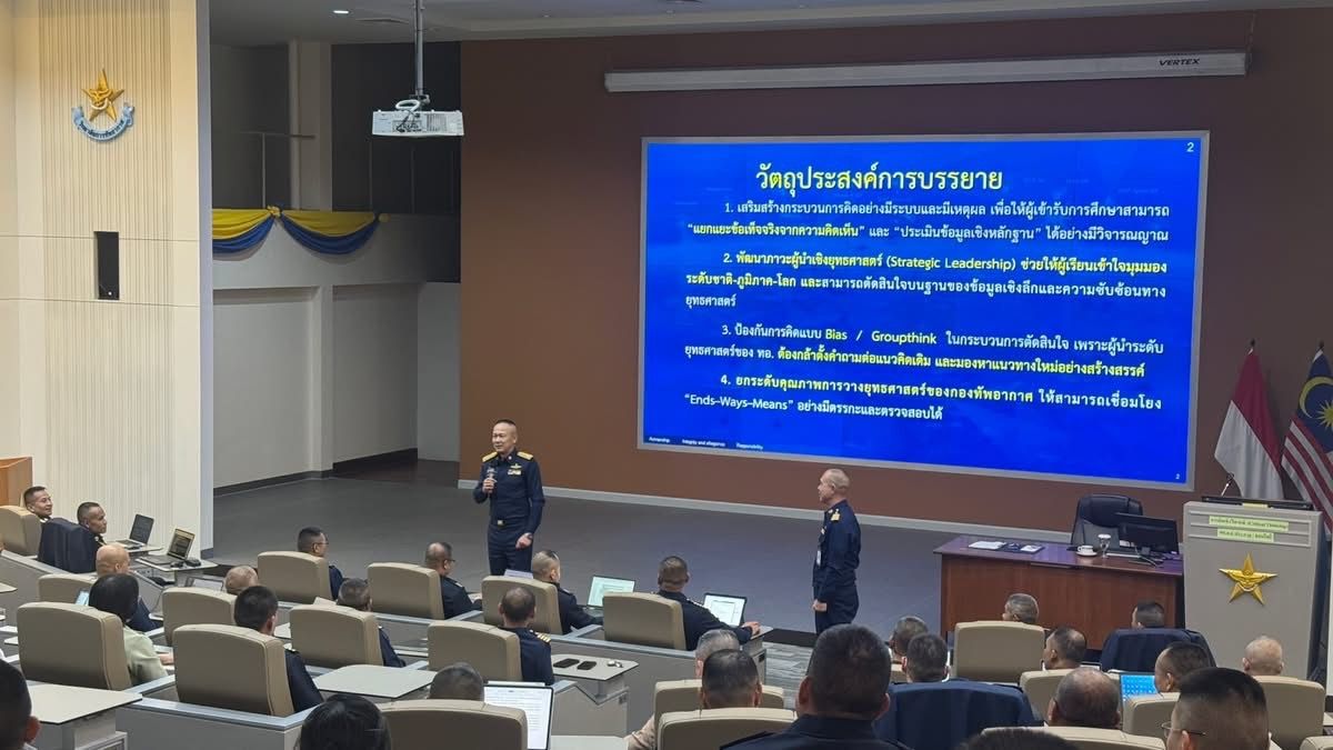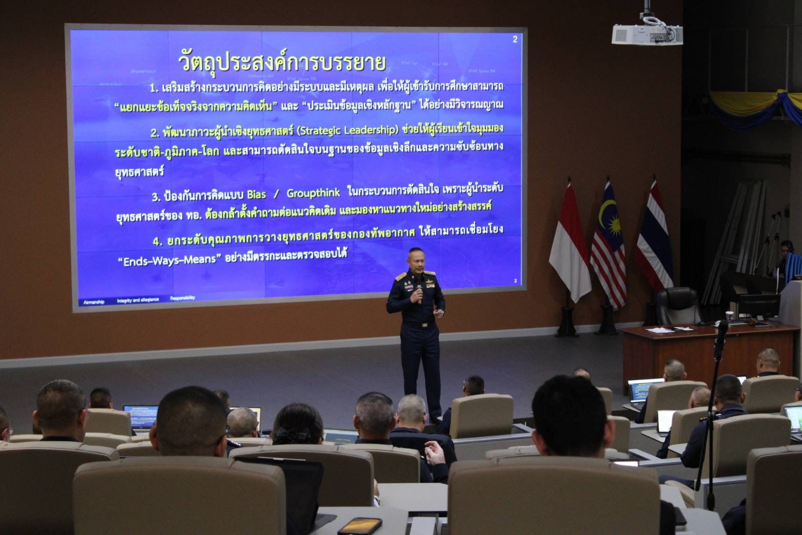 เมื่อวันที่อังคารที่ ๒๕ พฤศจิกายน ๒๕๖๘ พลอากาศตรี พฤทธิ์ ตึกสุอินทร์ รองเจ้ากรมยุทธศึกษาทหารอากาศ (สายงานบริหาร) พร้อมด้วย นาวาอากาศเอก พิสุทธิพงศ์ ศรีชูรส รองเสนาธิการ กรมยุทธศึกษาทหารอากาศ (สายงานการศึกษา) และคณะผู้บังคับบัญชา วิทยาลัยการทัพอากาศ อาจารย์ให้การต้อนรับ พลอากาศเอก ประภาส สอนใจดี ผู้ช่วยผู้บัญชาการทหารอากาศ (สายงานกิจการพิเศษ) ให้เกียรติบรรยายพิเศษแก่ นักศึกษาหลักสูตรการทัพอากาศ รุ่นที่ ๖๐ จำนวน ๘๗ นาย ณ ห้องบรรยาย วิทยาลัยการทัพอากาศ กรมยุทธศึกษาทหารอากาศ โดยบรรยายในหัวข้อ “การคิดเชิงวิพากษ์” (Critical Thinking) ซึ่งเป็นทักษะสำคัญของผู้นำและนักยุทธศาสตร์ในยุคข้อมูลหนาแน่นและสถานการณ์ความมั่นคงซับซ้อน