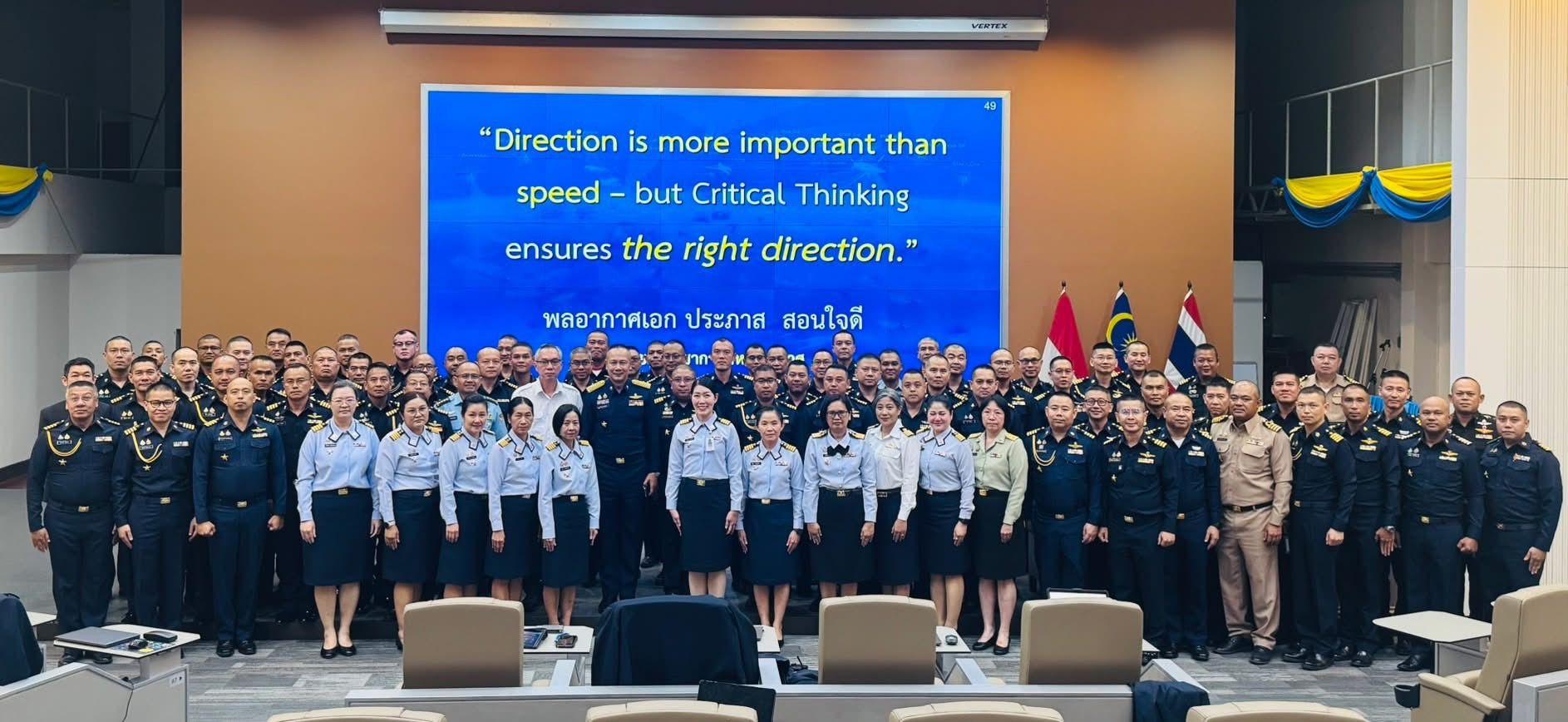 พลอากาศเอก ประภาส สอนใจดี เน้นย้ำว่า Critical Thinking ไม่ใช่การคิดเชิงวิชาการ แต่เป็น “เข็มทิศ” ของผู้นำ ในยุคที่ต้องเผชิญกับข้อมูลจำนวนมาก (Information Overload) การตัดสินใจที่กดดันด้านเวลา และภัยคุกคามรูปแบบใหม่หลากมิติ สาระสำคัญ มีดังนี้