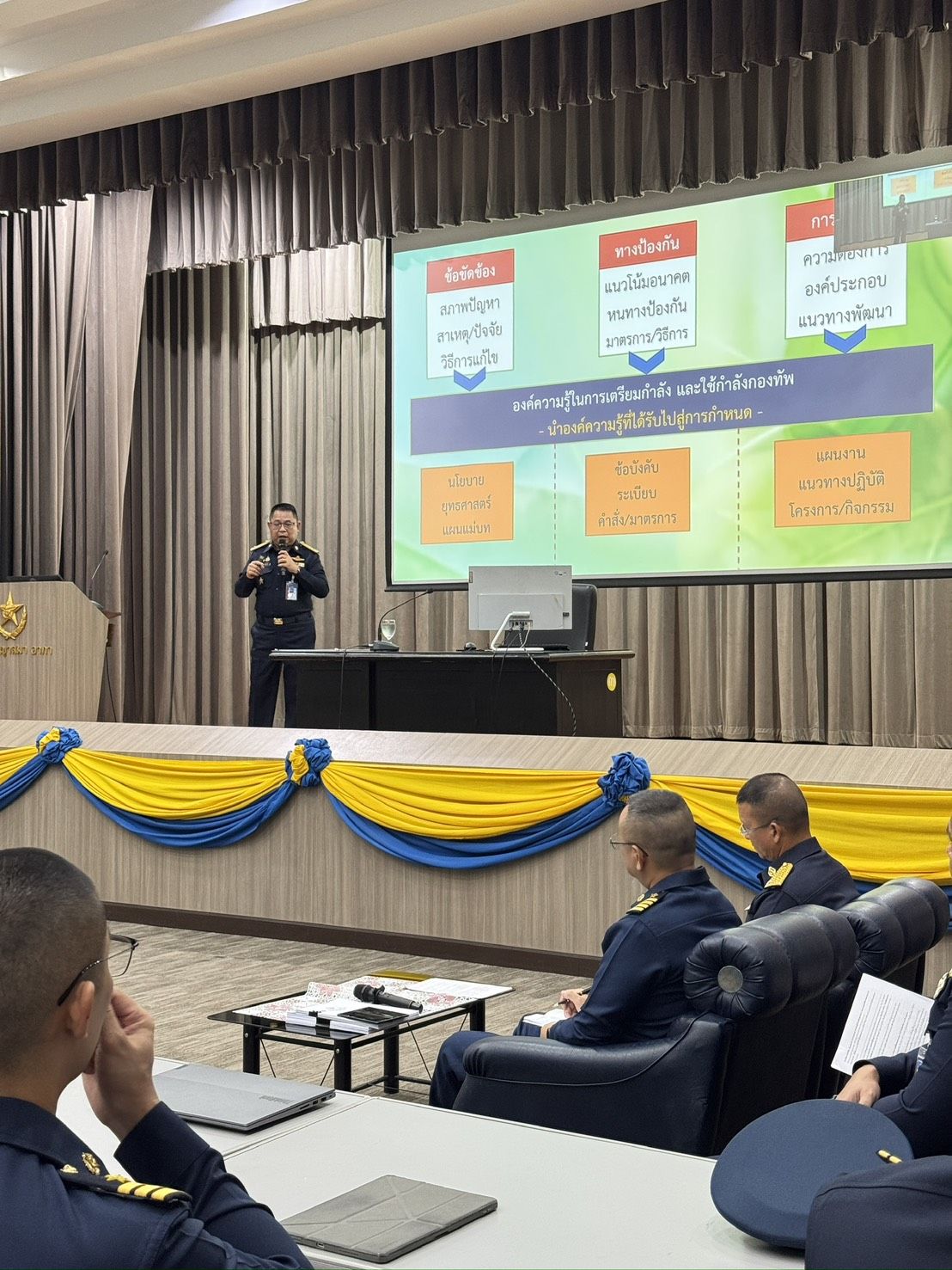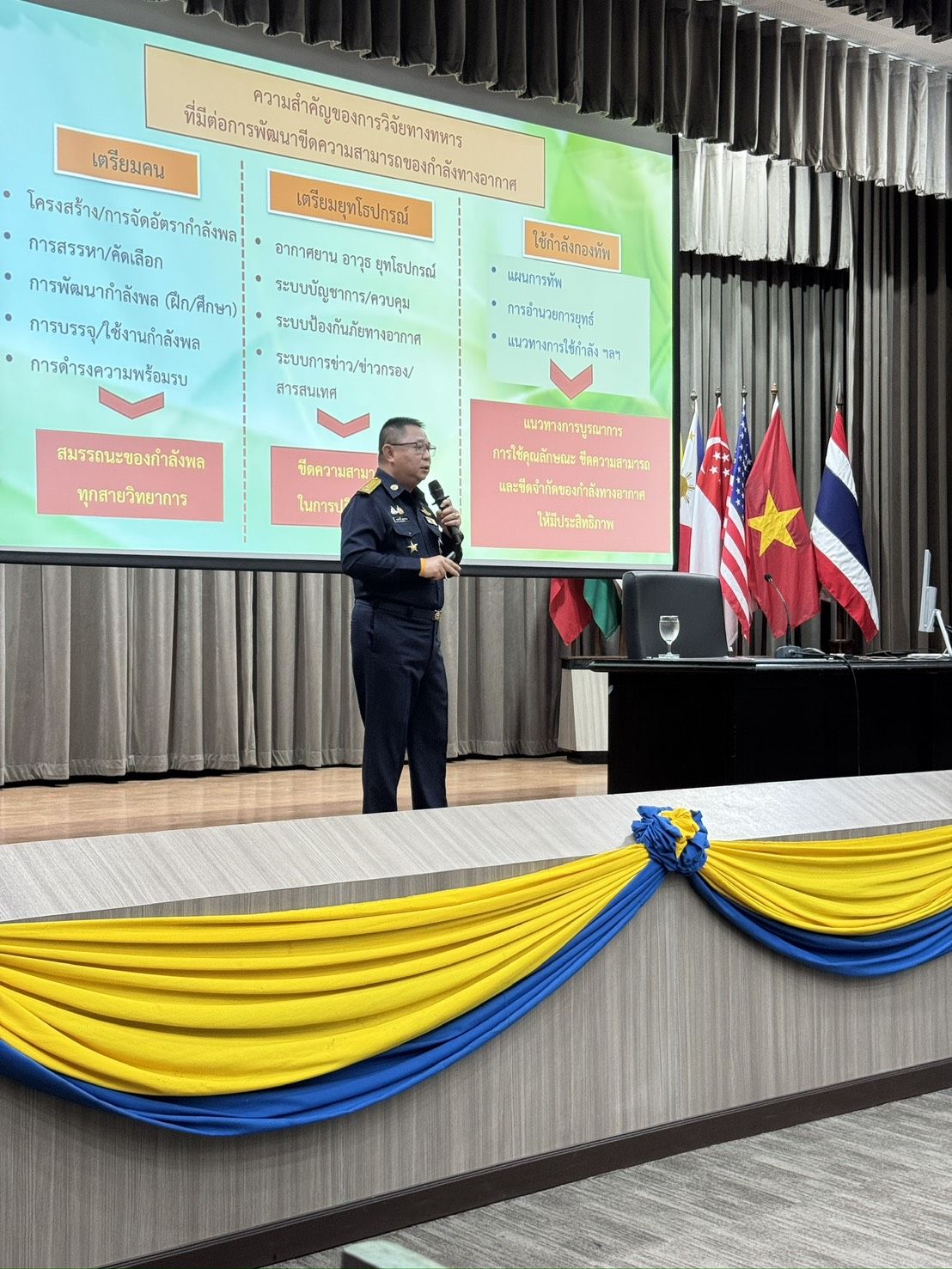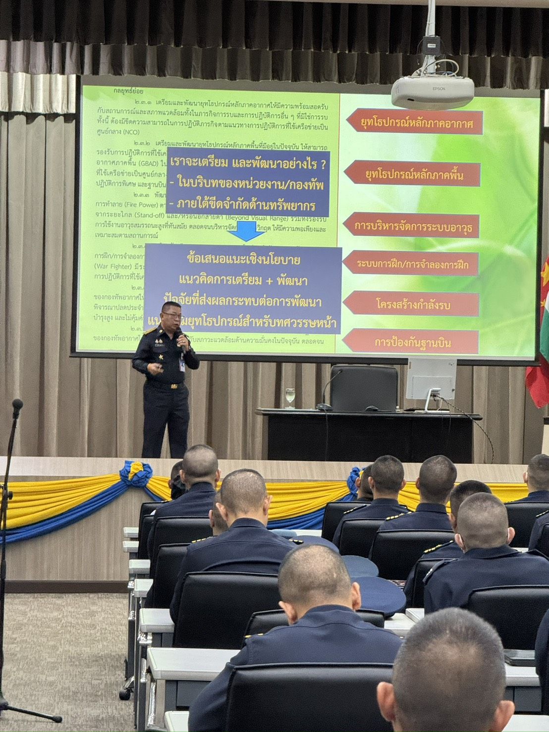 พลอากาศโท ยุทธศักดิ์ พูลสุวรรณ เจ้ากรมยุทธศึกษาทหารอากาศ ให้เกียรติบรรยายพิเศษหลักสูตรเสนาธิการทหารอากาศ รุ่นที่ ๗๐ ในหัวข้อด้านงานวิจัยแก่นักศึกษาหลักสูตรเสนาธิการทหารอากาศ รุ่นที่ ๗๐ เมื่อวันศุกร์ที่ ๒๑ พฤศจิกายน ๒๕๖๘ ณ ห้องบรรยาย โรงเรียนเสนาธิการทหารอากาศ กรมยุทธศึกษาทหารอากาศ ในปีการศึกษานี้ มีผู้เข้ารับการศึกษาทั้งสิ้น ๑๐๒ คน ประกอบด้วยข้าราชการสังกัดกระทรวงกลาโหม สำนักงานตำรวจแห่งชาติ และนักศึกษาจากประเทศมิตรประเทศ การบรรยายดังกล่าวมีวัตถุประสงค์เพื่อเสริมสร้างความรู้ ความเข้าใจเกี่ยวกับกระบวนการวิจัยทางทหารในหลากหลายมิติ ซึ่งถือเป็นพื้นฐานสำคัญในการสร้างองค์ความรู้ใหม่และพัฒนาผลงานวิจัยเชิงยุทธการของนักศึกษาในอนาคต ทั้งยังเป็นโอกาสสำคัญในการถ่ายทอดประสบการณ์ด้านงานวิจัยระหว่างผู้เข้ารับการศึกษา อันจะนำไปสู่การเสริมสร้างศักยภาพและความพร้อมในการพัฒนาผลงานวิจัยระดับยุทธการต่อไป