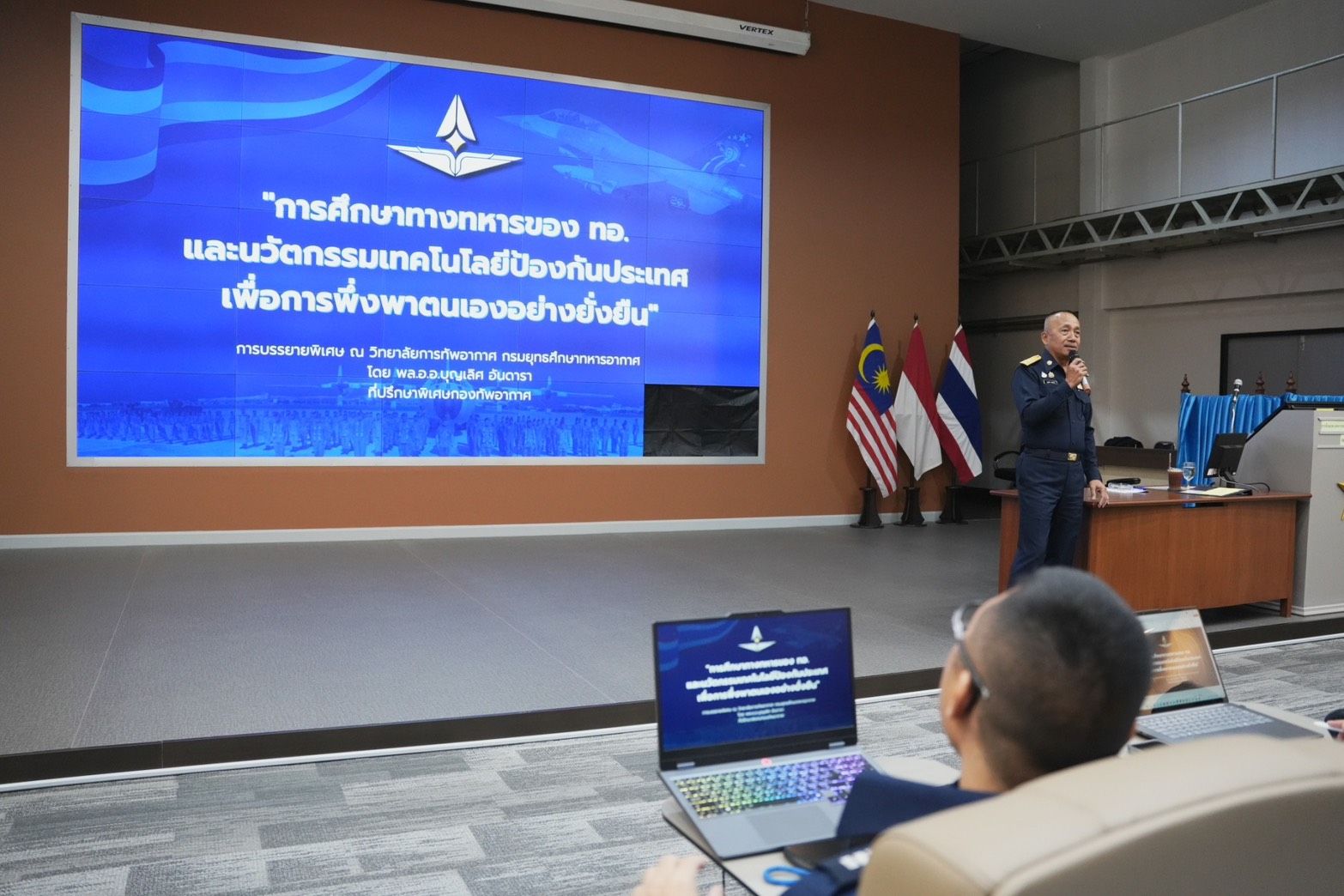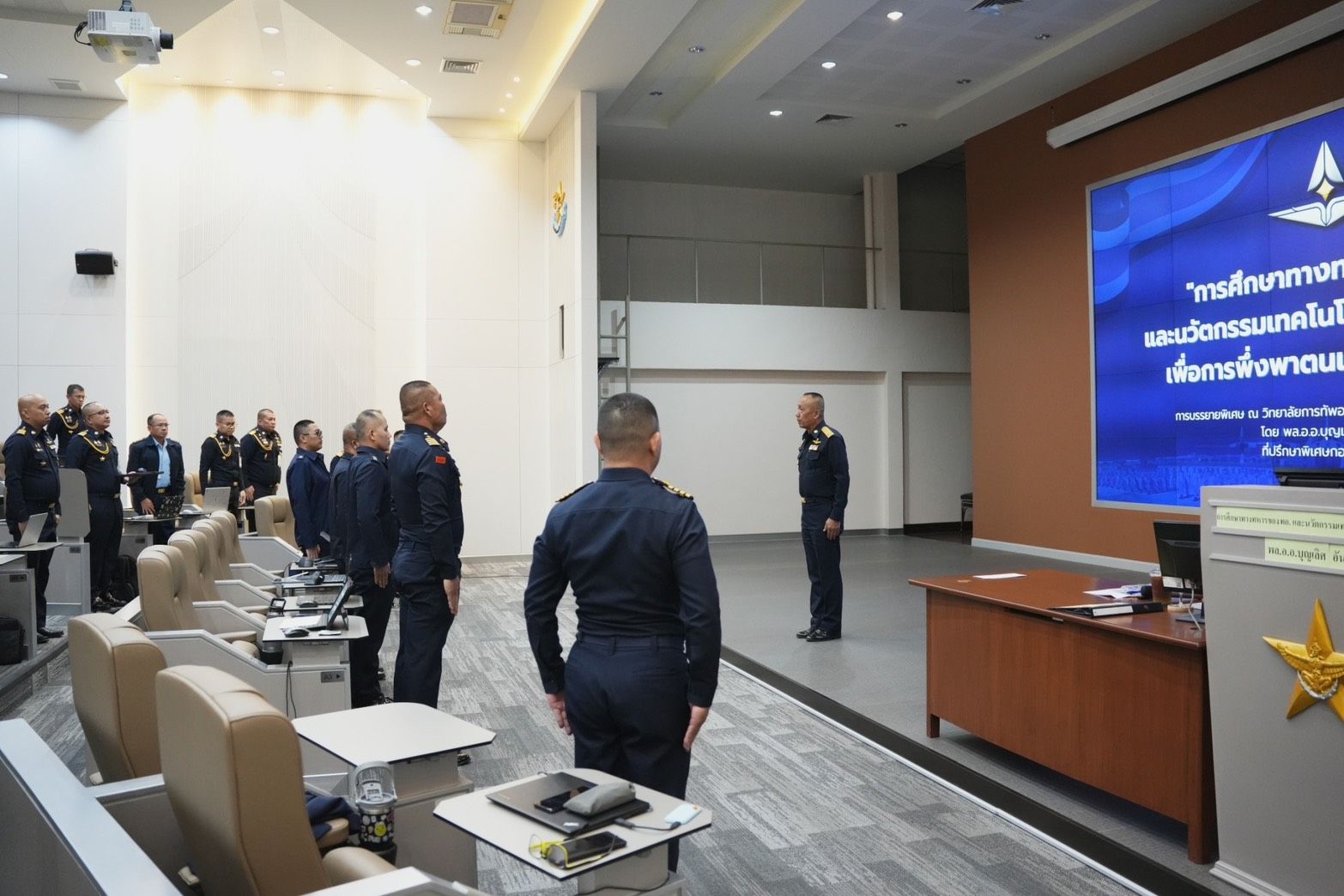 บรรยายพิเศษการศึกษาทางทหาร และนวัตกรรมเทคโนโลยีป้องกันประเทศเพื่อการพึ่งพาตนเองอย่างยั่งยืน แก่นักศึกษาวิทยาลัยการทัพอากาศ รุ่นที่ ๖๐