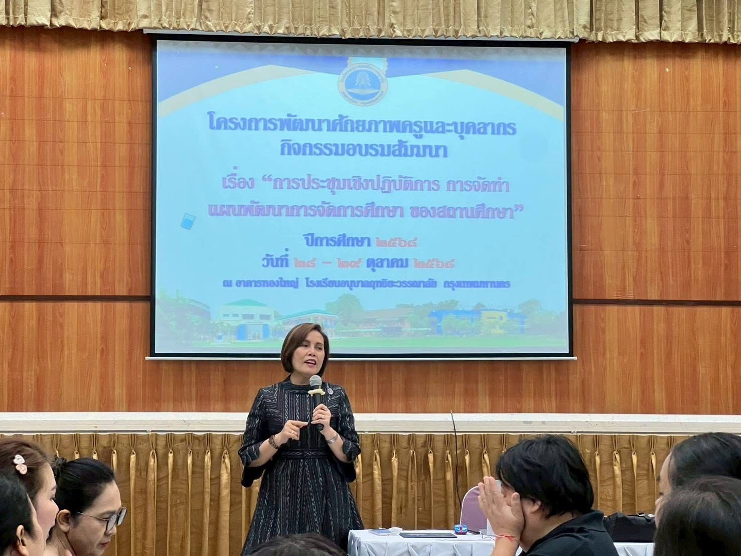 พลอากาศตรี วรพจน์ เขียวสมบูรณ์ เสนาธิการ กรมยุทธศึกษาทหารอากาศ เป็นประธานมอบเกียรติบัตรให้กับบุคลากรที่เข้าร่วมการอบรม "ประชุมเชิงปฏิบัติการ การจัดทำแผนพัฒนาการจัดการศึกษา ของสถานศึกษา" โดยมี ดร.ชนกนาถ วงษ์คำจันทร์ วิทยากรผู้ทรงคุณวุฒิ เป็นผู้ให้ความรู้ เมื่อวันพุธที่ ๒๙ ตุลาคม ๒๕๖๘ ณ อาคารทองใหญ่ โรงเรียนอนุบาลฤทธิยะวรรณาลัย กรมยุทธศึกษาทหารอากาศ
