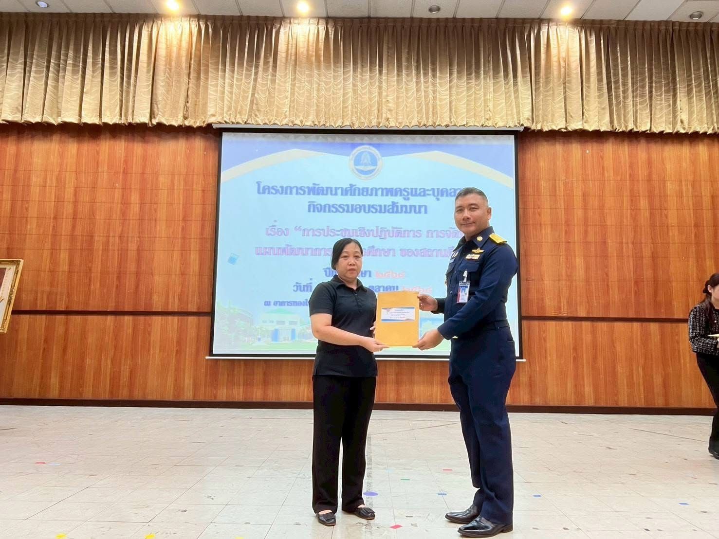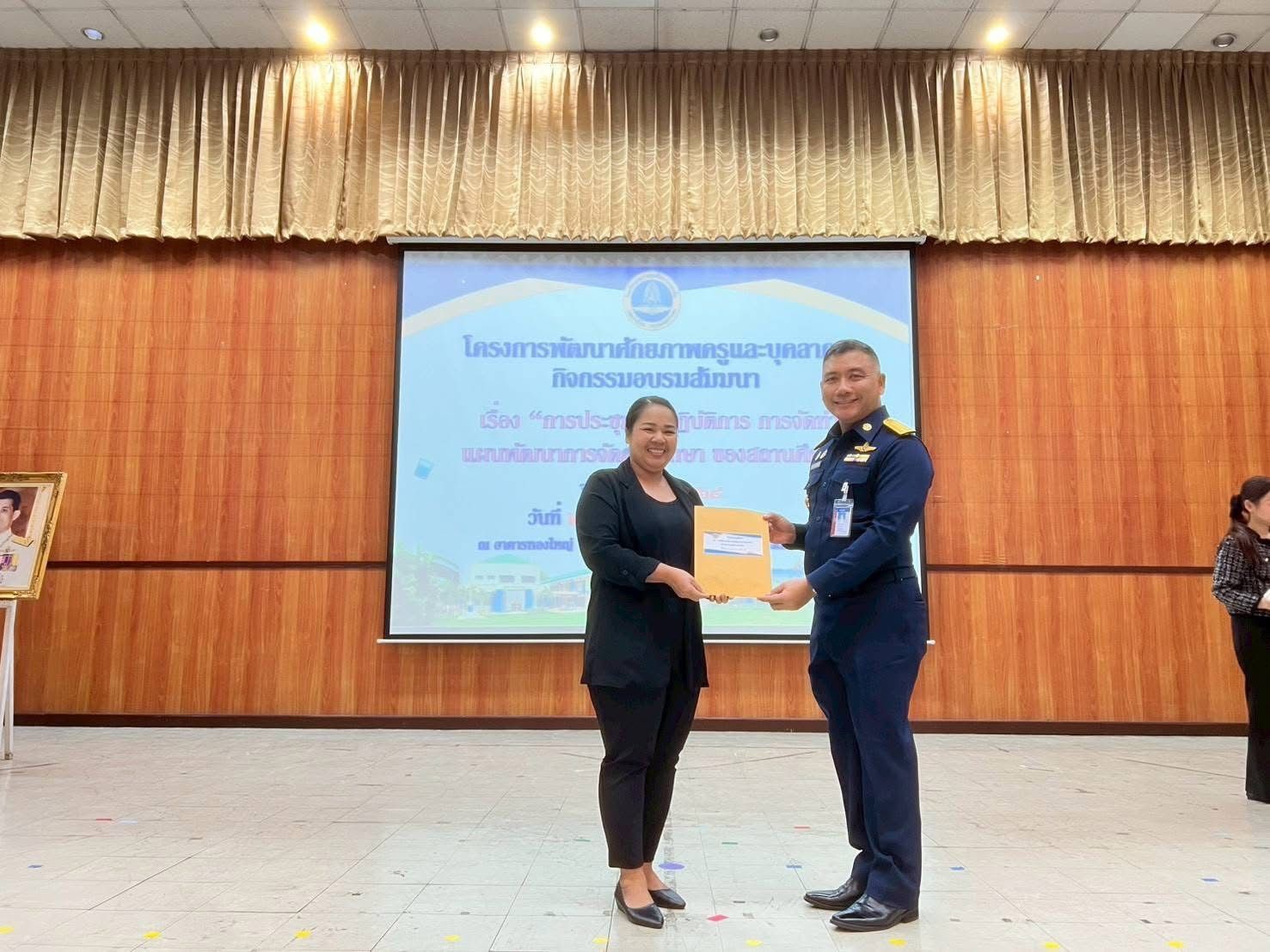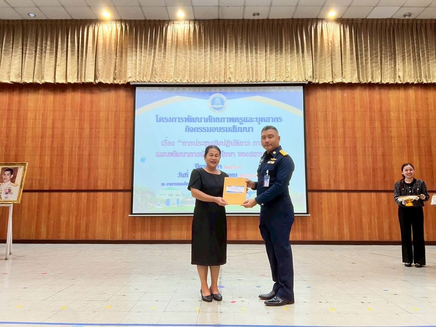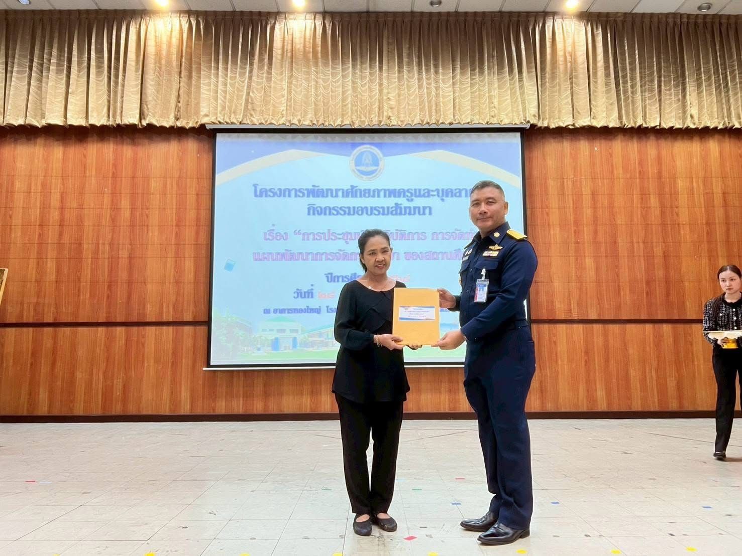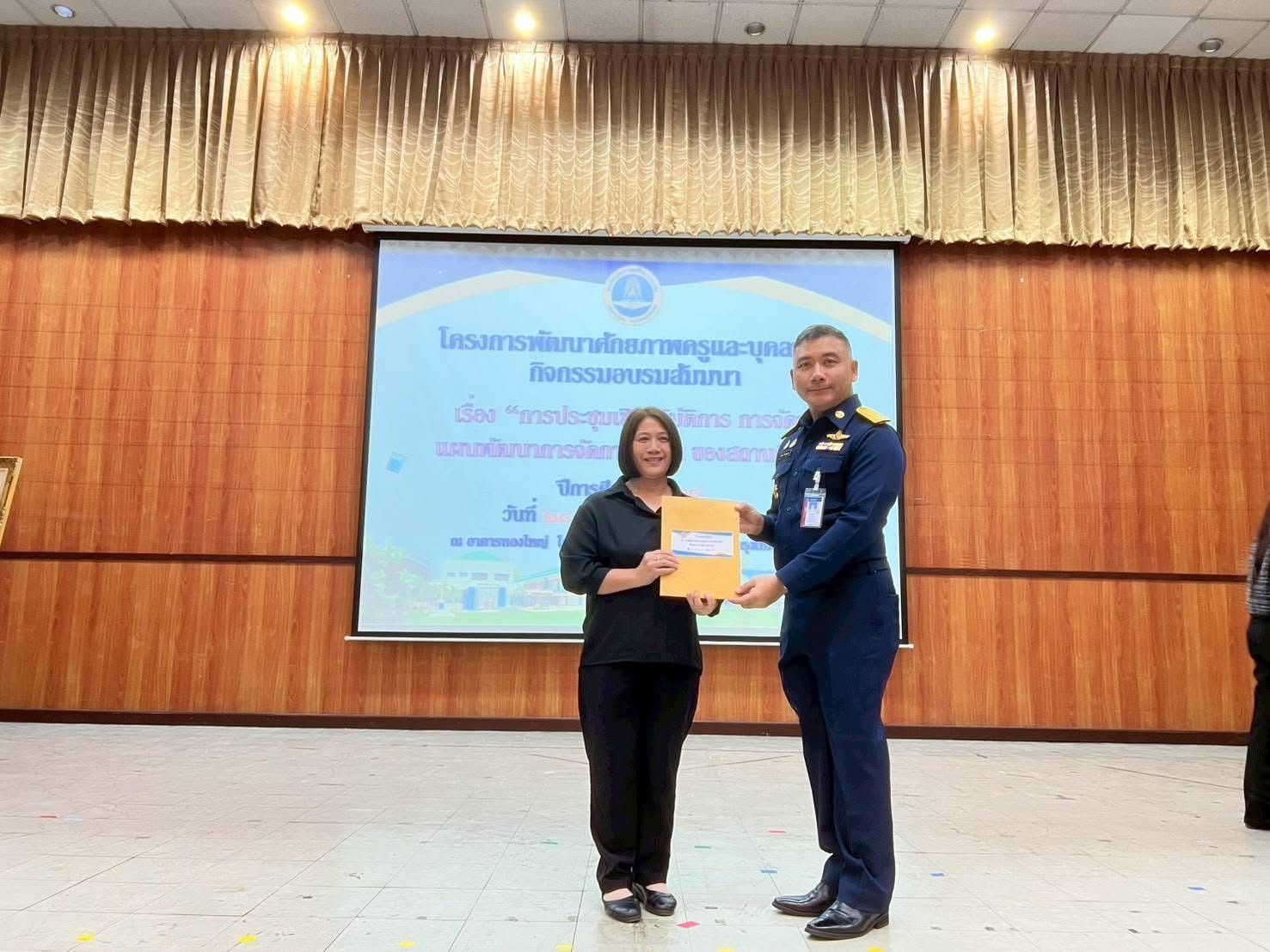 เสนาธิการ กรมยุทธศึกษาทหารอากาศ มอบเกียรติบัตรให้กับบุคลากรที่เข้าร่วมการอบรม "ประชุมเชิงปฏิบัติการ การจัดทำแผนพัฒนาการจัดการศึกษา ของสถานศึกษา"