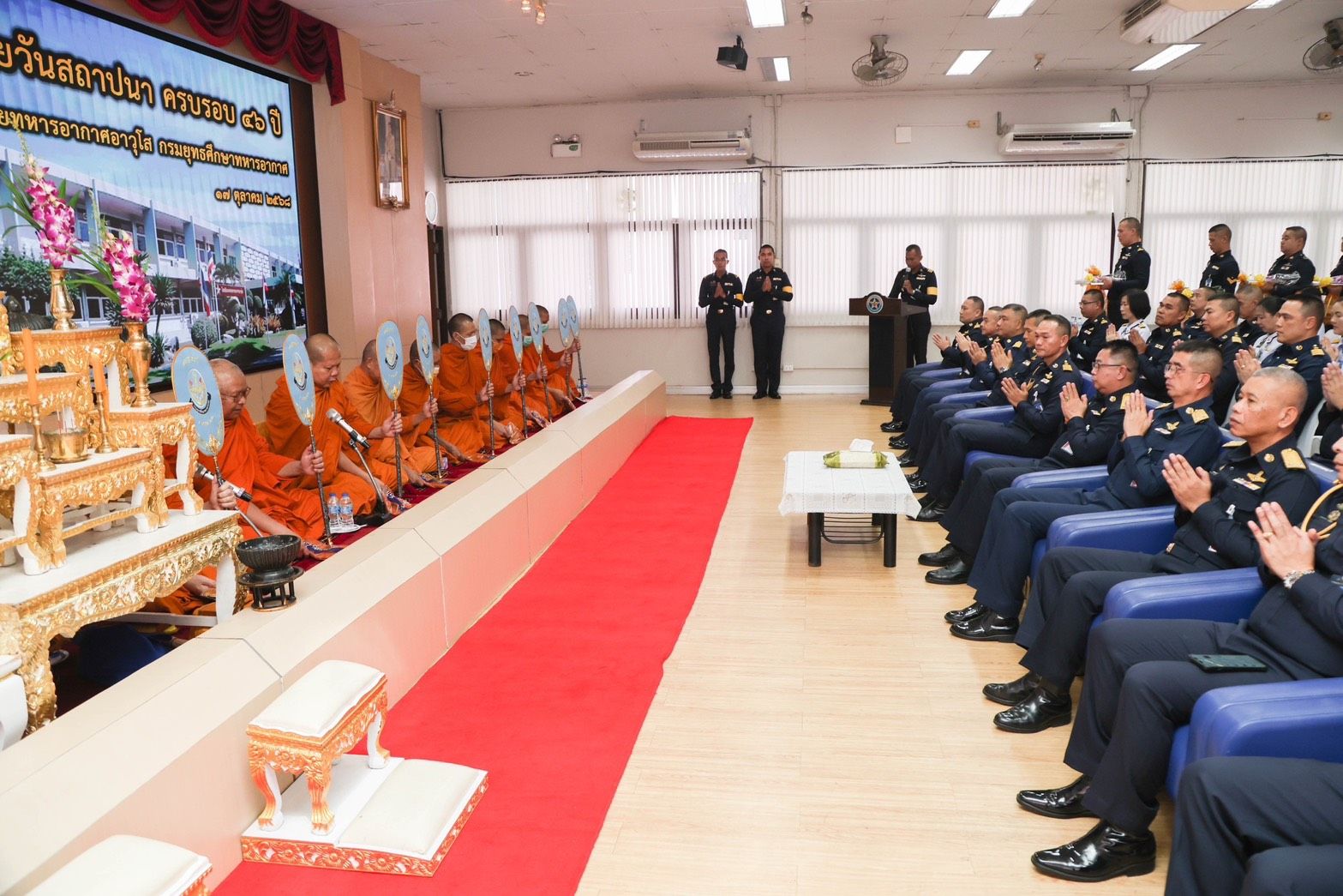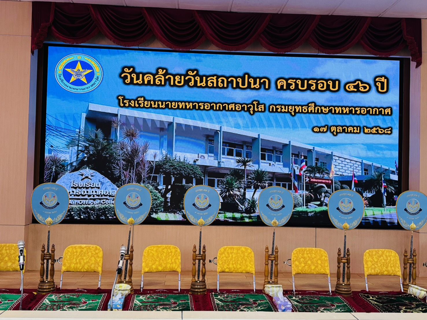 พลอากาศโท ยุทธศักดิ์ พูลสุวรรณ เจ้ากรมยุทธศึกษาทหารอากาศ เป็นประธานในพิธีวันคล้ายวันสถาปนา ครบรอบ ๔๖ ปี โรงเรียนนายทหารอากาศอาวุโส กรมยุทธศึกษาทหารอากาศ พร้อมด้วย คณะผู้บังคับบัญชา หัวหน้าหน่วยขึ้นตรง และ ข้าราชการ ลูกจ้าง พนักงานราชการ โรงเรียนนายทหารทหารอากาศอาวุโส กรมยุทธศึกษาทหารอากาศ เมื่อศุกร์ที่ ๑๗ ตุลาคม ๒๕๖๘ เวลา ๑๐๐๐ ณ ห้องบรรยายโรงเรียนนายทหารอากาศอาวุโส กรมยุทธศึกษาทหารอากาศ