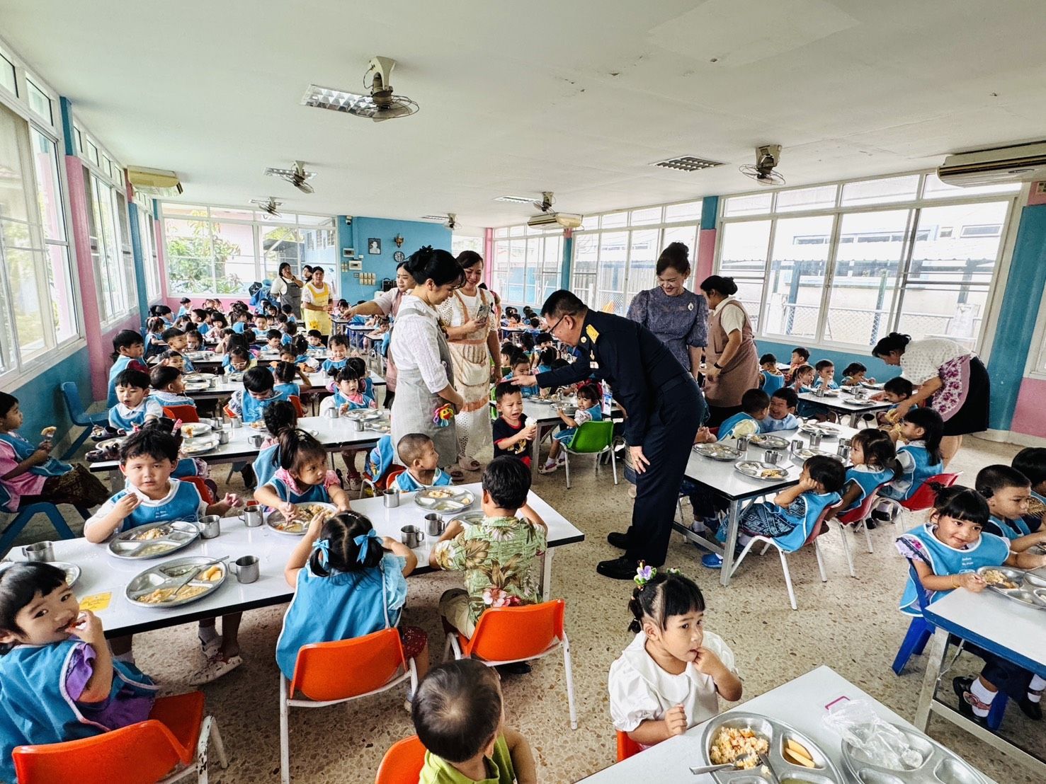 พลอากาศโท ยุทธศักดิ์ พูลสุวรรณ เจ้ากรมยุทธศึกษาทหารอากาศ ตรวจความเรียบร้อยอาหารกลางวัน และเลี้ยงไอศครีม เพื่อเป็นขวัญกำลังใจ ตามโครงการสุขภาพจิตเพื่อพัฒนาคุณภาพชีวิตที่ดี กับสถานรับเลี้ยงเด็กฤทธิยะวรรณาลัย เมื่อวันพุธที่ ๕ พฤศจิกายน ๒๕๖๘ เวลา ๑๑๐๐ น. ณ สถานรับเลี้ยงเด็กฤทธิยะวรรณาลัย กรมยุทธศึกษาทหารอากาศ