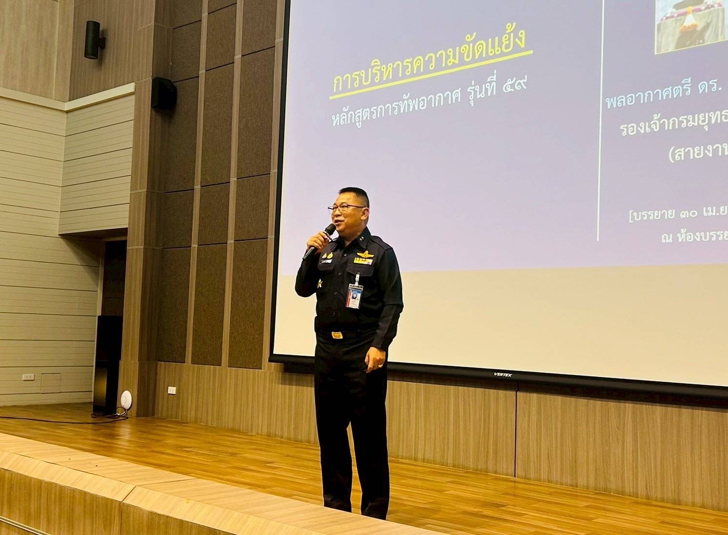 พลอากาศตรี ยุทธศักดิ์ พูลสุวรรณ รองเจ้ากรมยุทธศึกษาทหารอากาศ (สายงานการศึกษา) ให้เกียรติบรรยายหลักสูตร วิทยาลัยการทัพอากาศ รุ่นที่ ๕๙ เรื่อง การบริหาร ความขัดแย้ง การบริหารความขัดแย้ง เป็นการเรียนรู้เกี่ยวกับปัจจัยและสาเหตุของความขัดแย้งในองค์กรหรือหน่วยงานด้านความมั่นคง ทั้งความขัดแย้งในเชิงนโยบายการบริหาร และความขัดแย้งในระดับยุทธศาสตร์ภายในประเทศ, ระหว่างประเทศ ในภูมิภาค และความขัดแย้งระดับสากล เป็นการวิเคราะห์ประเมินสถานการณ์ความขัดแย้ง ผลกระทบ และแนวทางการจัดการอย่างเป็นระบบ ด้วยกลไกการบริหาร การจัดการเชิงองค์รวม และประสานการดำเนินงานให้เกิดความร่วมมือ ป้องกันและแก้ไขปัญหาความขัดแย้งได้อย่างยั่งยืน เนื้อหาการบรรยาย กล่าวถึงแนวคิด ทฤษฎี หลักการ การบริหารความขัดแย้ง แนวทางการป้องกันและแก้ไขปัญหาความขัดแย้ง เมื่อวันพุธที่ ๓๐ เมษายน ๒๕๖๘ ณ ห้องบรรยายหอสมุดกองทัพอากาศ กรมยุทธศึกษาทหารอากาศ
