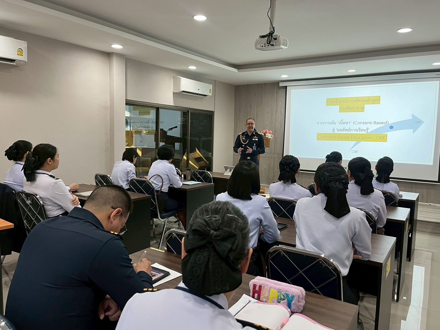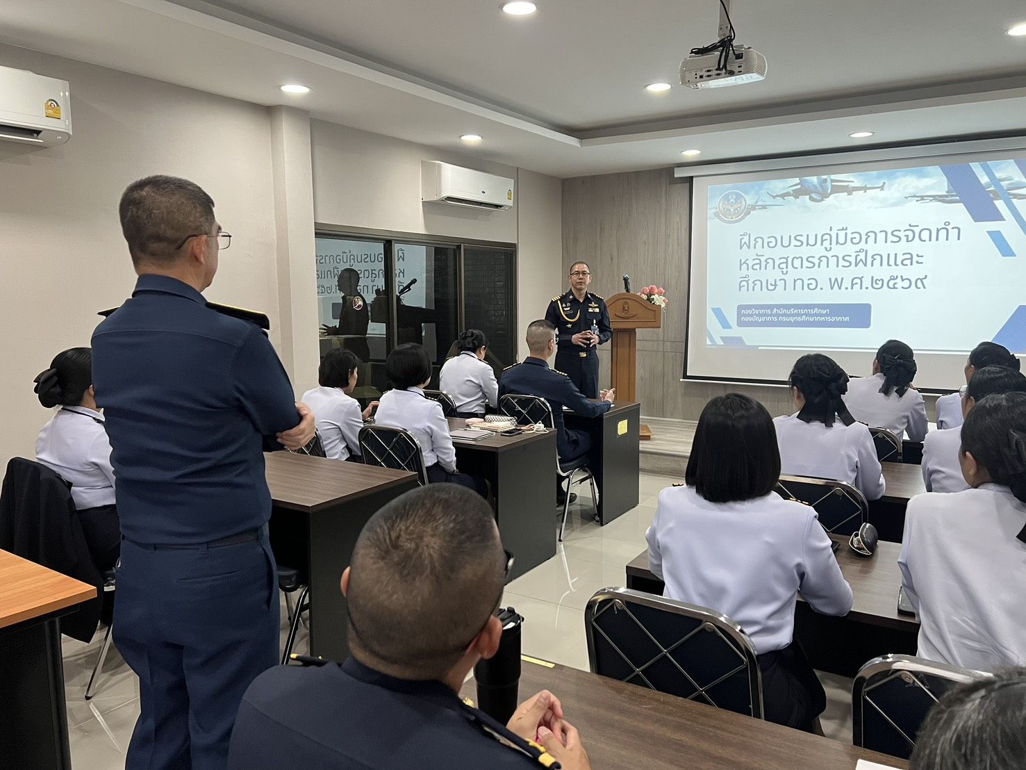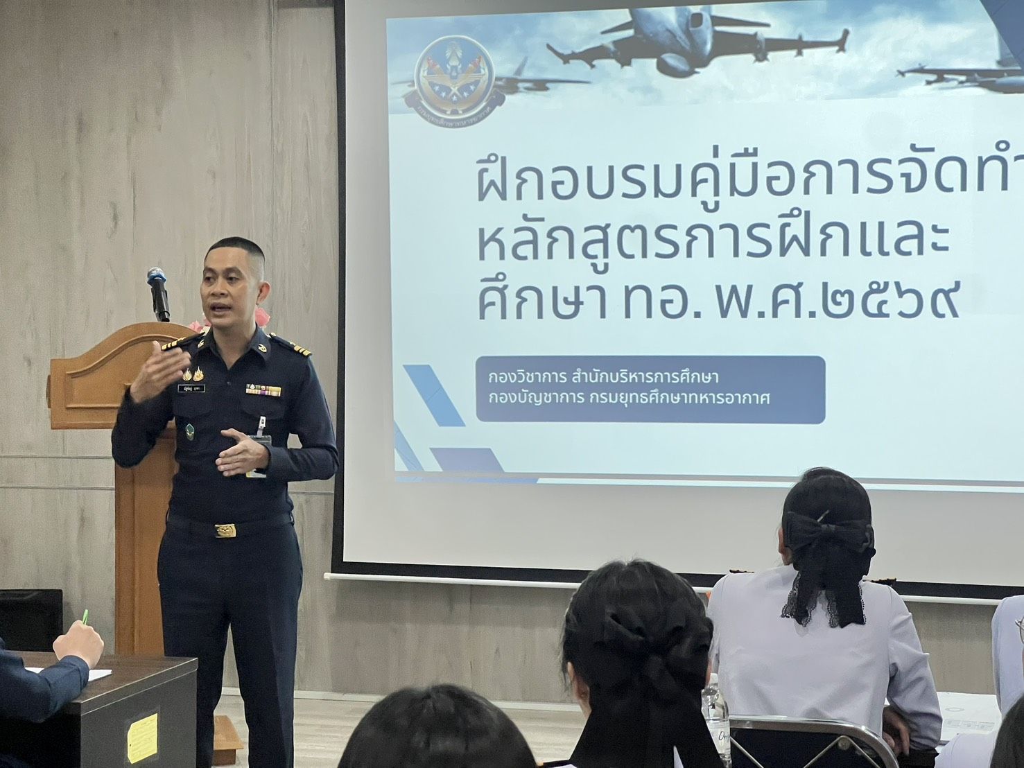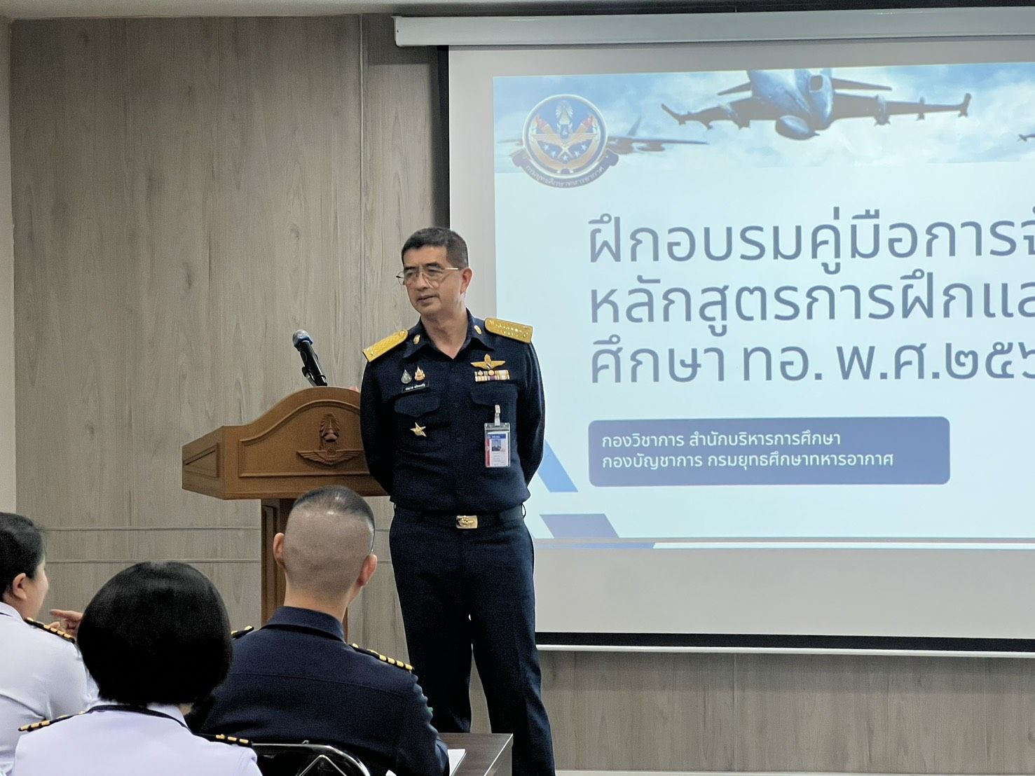 พลอากาศตรี ประภาส ศรีประเสริฐ รองเจ้ากรมยุทธศึกษาทหารอากาศ (สายงานการศึกษา) เป็นประธานเปิดการอบรม การจัดทำหลักสูตรการศึกษาและการฝึก ตามคู่มือการจัดทำหลักสูตรการฝึก และศึกษาของกองทัพอากาศ ๒๕๖๙ เมื่อวันพฤหัสบดีที่ ๑๒ กุมภาพันธ์ ๒๕๖๙ เวลา ๑๓๐๐ ณ ห้องบรรยาย สำนักบริหารการศึกษา (ชั้น ๒) กรมยุทธศึกษาทหารอากาศ การจัดทำหลักสูตรการศึกษาและการฝึกตามคู่มือการจัดทำหลักสูตรการฝึกและศึกษาของกองทัพอากาศ ๒๕๖๙ กรมยุทธศึกษาทหารอากาศ มุ่งมั่นจะผลักดันนโยบาย การศึกษาของกองทัพอากาศในการพัฒนาหลักสูตรทุกระดับของกองทัพอากาศ ให้ตอบสนองต่อวิสัยทัศน์ นโยบาย และยุทธศาสตร์กองทัพอากาศ รวมทั้งความถูกต้องตามรูปแบบ ขั้นตอนการปฏิบัติเป็นมาตรฐานเดียวกัน เพื่อเพิ่มขีดความสามารถสำหรับบุคลากร และหน่วยงานของกองทัพอากาศ