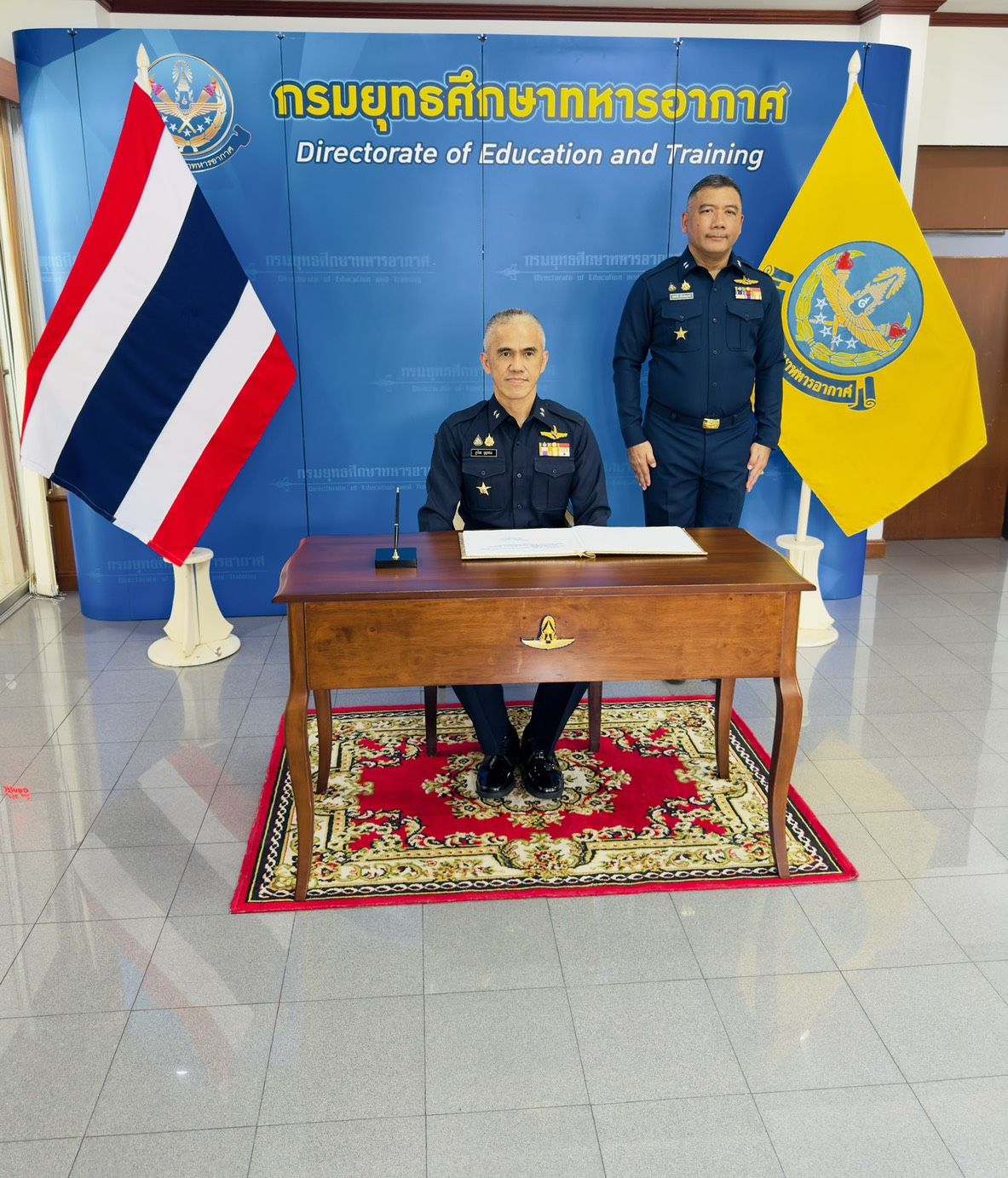 พลอากาศตรี วรพจน์ เขียวสมบูรณ์ เสนาธิการกรมยุทธศึกษาทหารอากาศ ให้การต้อนรับ พลอากาศตรี ภูวไนย บุญวรรณ ผู้อำนวยการสำนักบริหารทรัพยากร สำนักงานปลัดบัญชีทหารอากาศ และคณะตรวจเยี่ยมสายวิทยาการปลัดบัญชี กรมยุทธศึกษาทหารอากาศ เมื่อวันพุธที่ ๑ เมษายน ๒๕๖๙ ณ ห้องประชุม กองบัญชาการกรมยุทธศึกษาทหารอากาศ (ชั้น ๒)