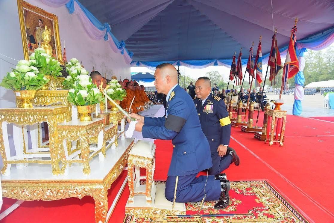 ในโอกาสนี้ นายทหารชั้นผู้ใหญ่ กองทัพอากาศ พร้อมด้วย พลอากาศโท ยุทธศักดิ์ พูลสุวรรณ เจ้ากรมยุทธศึกษาทหารอากาศ นายทหารชั้นสัญญาบัตร นายทหารชั้นประทวน และทหารกองประจำการ ที่ยังไม่เคยเข้าร่วมพิธี ได้เข้าปฏิญาณตนในพิธี ซึ่งเป็นธรรมเนียมปฏิบัติที่บุคคลซึ่งเข้ารับราชการทหารจะต้องเข้าร่วมพิธีกระทำสัตย์ปฏิญาณตนต่อธงชัยเฉลิมพล จึงจะถือว่าเป็นทหารโดยสมบูรณ์