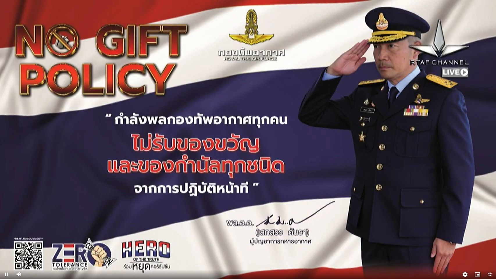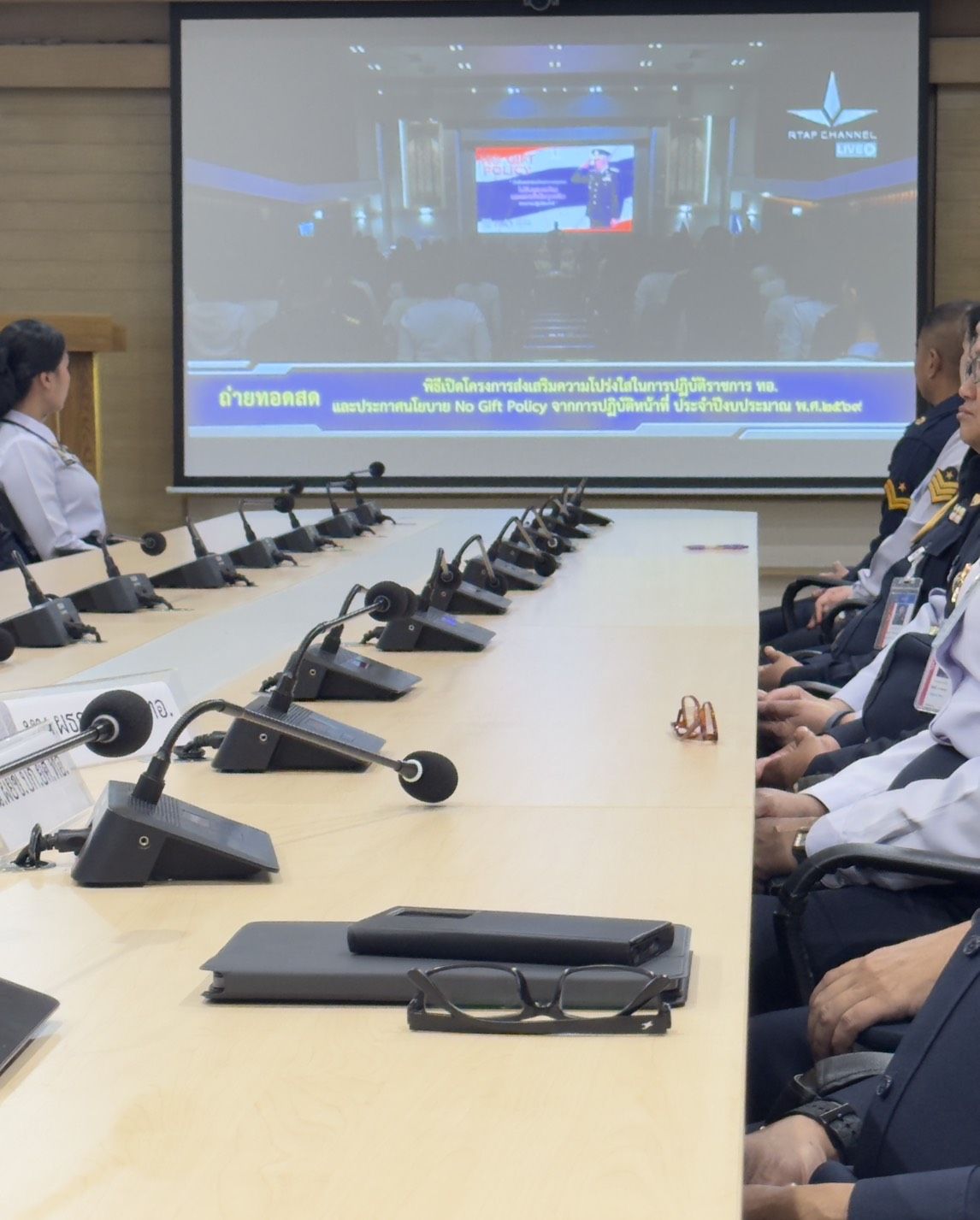 กรมยุทธศึกษาทหารอากาศ เข้าร่วมรับชมการถ่ายทอดสัญญาณ โครงการส่งเสริมความโปร่งใสในการปฏิบัติราชการกองทัพอากาศ No gift policy