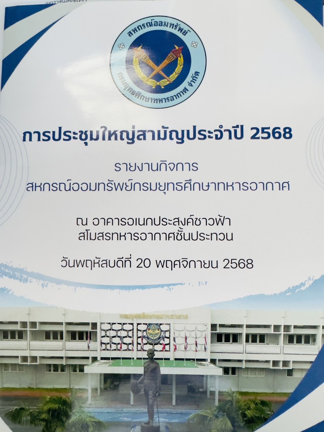 พลอากาศโท ยุทธศักดิ์ พูลสุวรรณ เจ้ากรมยุทธศึกษาทหารอากาศ /ประธานสหกรณ์ออมทรัพย์ กรมยุทธศึกษาทหารอากาศ เป็นประธานการประชุมใหญ่ สหกรณ์ออมทรัพย์ กรมยุทธศึกษาทหารอากาศ ประจำปี ๒๕๖๘ โดยการประชุมได้นำเสนอรายงานสถานภาพการเงิน ผลการดำเนินงาน ปี ๒๕๖๘ พร้อมทั้ง จับฉลากแจกรางวัล และ จัดอาหารกลางวัน ให้แก่สมาชิก สหกรณ์ออมทรัพย์กรมยุทธศึกษาทหารอากาศ เมื่อวัน พฤหัสบดีที่ ๒๐ พฤศจิกายน ๒๕๖๘ ณ ห้องประชุมอาคารอเนกประสงค์ชาวฟ้าสโมสรทหารอากาศชั้นประทวน