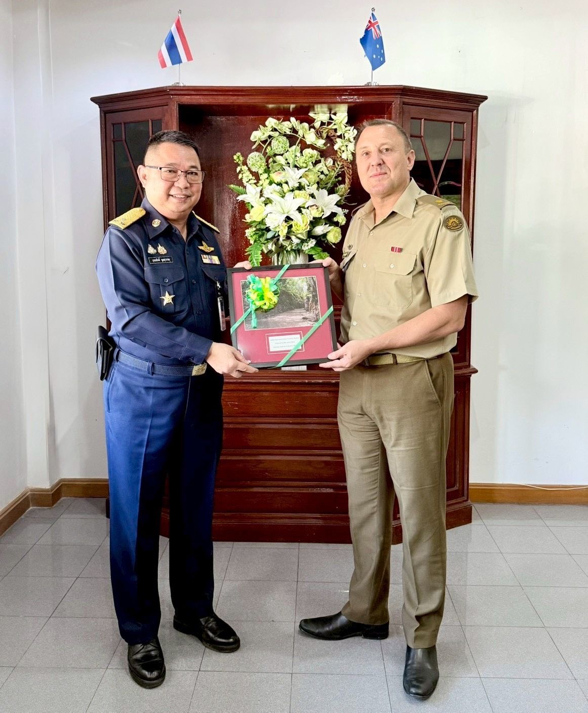 พันตรี Jamie Steels นายทหารการศึกษาโครงการความร่วมมือกลาโหมออสเตรเลีย (Defence Cooperation Education Officer: DCEO) ประจำสำนักงานผู้ช่วยทูตทหารออสเตรเลีย กรุงเทพมหานคร เข้าเยี่ยมคำนับ พลอากาศโท ยุทธศักดิ์ พูลสุวรรณ เจ้ากรมยุทธศึกษาทหารอากาศและคณะ ในโอกาสสิ้นสุดวาระการปฏิบัติหน้าที่ และแนะนำ พันตรี Stuart Patterson ผู้เข้ารับตำแหน่งใหม่ ณ ห้องรับรอง กองบัญชาการ กรมยุทธศึกษาทหารอากาศ เมื่อวันอังคารที่ ๑๓ มกราคม พ.ศ.๒๕๖๙พันตรี Jamie Steels นายทหารการศึกษาโครงการความร่วมมือกลาโหมออสเตรเลีย (Defence Cooperation Education Officer: DCEO) ประจำสำนักงานผู้ช่วยทูตทหารออสเตรเลีย กรุงเทพมหานคร เข้าเยี่ยมคำนับ พลอากาศโทยุทธศักดิ์ พูลสุวรรณ เจ้ากรมยุทธศึกษาทหารอากาศและคณะ ในโอกาสสิ้นสุดวาระการปฏิบัติหน้าที่ และแนะนำ พันตรี Stuart Patterson ผู้เข้ารับตำแหน่งใหม่ ณ ห้องรับรอง กองบัญชาการ กรมยุทธศึกษาทหารอากาศ เมื่อวันอังคารที่ ๑๓ มกราคม พ.ศ.๒๕๖๙