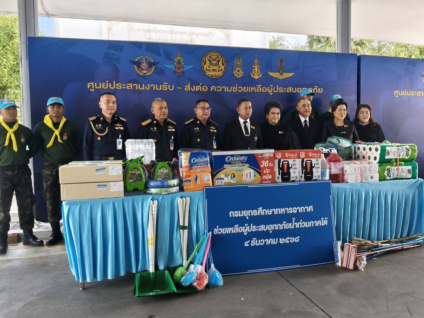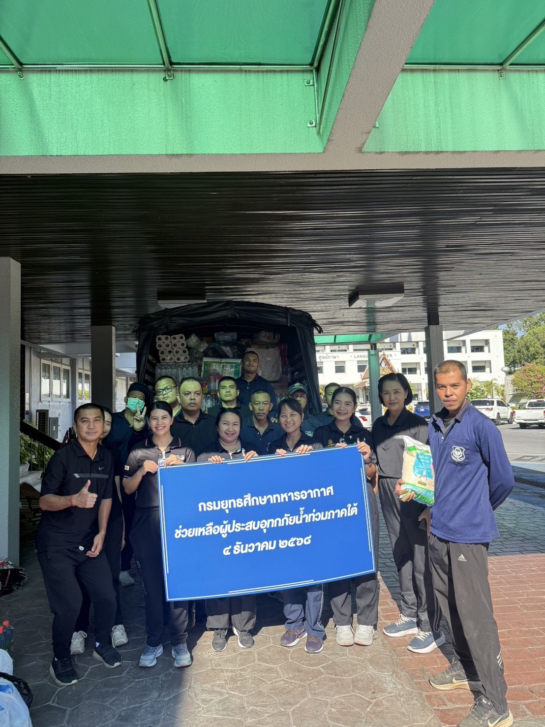 พลอากาศโท ยุทธศักดิ์ พูลสุวรรณ เจ้ากรมยุทธศึกษาทหารอากาศ พร้อมด้วยผู้บังคับบัญชา กรมยุทธศึกษาทหารอากาศ หัวหน้าหน่วยขึ้นตรง กรมยุทธศึกษาทหารอากาศ ข้าราชการ ลูกจ้างพนักงานราชการ และนายทหารนักเรียน หลักสูตรวิทยาลัยการทัพอากาศ, นายทหารนักเรียนหลักสูตร เสนาธิการทหารอากาศ, นายทหารนักเรียนหลักสูตรชั้นผู้บังคับฝูง, นายทหารนักเรียนหลักสูตรชั้นผู้บังคับหมวด และนายทหารนักเรียนชั้นประทวน รวมน้ำใจช่วยเหลือผู้ประสบอุทกภัยภาคใต้ ได้นำสิ่งของบริจาค สำหรับการยังชีพและเยียวยาพี่น้องประชาชน อาทิ ข้าวสาร น้ำ อาหารแห้ง ยาสามัญประจำบ้าน อุปกรณ์ทำความสะอาด เครื่องฉีดน้ำแรงดันสูง และสิ่งของเครื่องใช้จำเป็น เพื่อบรรเทาความเดือดร้อนของพี่น้องที่ประสบอุทกภัยในพื้นที่ภาคใต้ ณ ศูนย์ประสานงานรับ - ส่งต่อความช่วยเหลือผู้ประสบอุทภัยน้ำท่วมภาคใต้ เมื่อวันพฤหัสบดีที่ ๔ ธันวาคม ๒๕๖๘