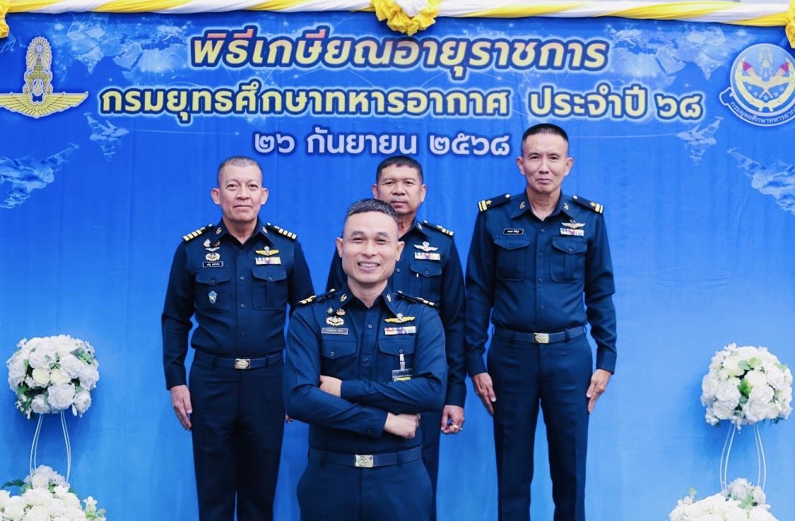 พลอากาศโท วรชาติ ทองศิริ เจ้ากรมยุทธศึกษาทหารอากาศ เป็นประธานในพิธีเกษียณอายุราชการ ประจำปี ๒๕๖๘ พร้อมกับอ่านสารแสดงความรู้สึกจากผู้บัญชาการทหารอากาศ ต่อผู้ที่ปฏิบัติหน้าที่ราชการจนครบเกษียณอายุราชการ เป็นผู้ที่ได้อุทิศตน เสียสละแรงกาย แรงใจ ความรู้ความสามารถในการรับใช้กองทัพอากาศ และประเทศชาติ ด้วยความวิริยะอุตสาหะ สมควรได้รับการยกย่องเชิดชูเกียรติ อีกทั้งยังได้มอบของที่ระลึกแก่ผู้เกษียณอายุราชการ เพื่อเป็นเครื่องหมายแห่งความภาคภูมิใจ และเป็นแบบอย่างที่ดีแก่กำลังพลกองทัพอากาศต่อไป โดยมี พลอากาศตรี ยุทธศักดิ์ พูลสุวรรณ รองเจ้ากรมยุทธศึกษาทหารอากาศ (สายงานการศึกษา) และคณะผู้บังคับบัญชา นายทหารชั้นผู้ใหญ่ ข้าราชการ และพนักงานราชการ กรมยุทธศึกษาทหารอากาศ ร่วมแสดงความยินดีอย่างอบอุ่น เมื่อวันศุกร์ที่ ๒๖ กันยายน ๒๕๖๘ ณ ห้องบรรยาย โรงเรียนนายทหาร ชั้นผู้บังคับฝูง กรมยุทธศึกษาทหารอากาศ