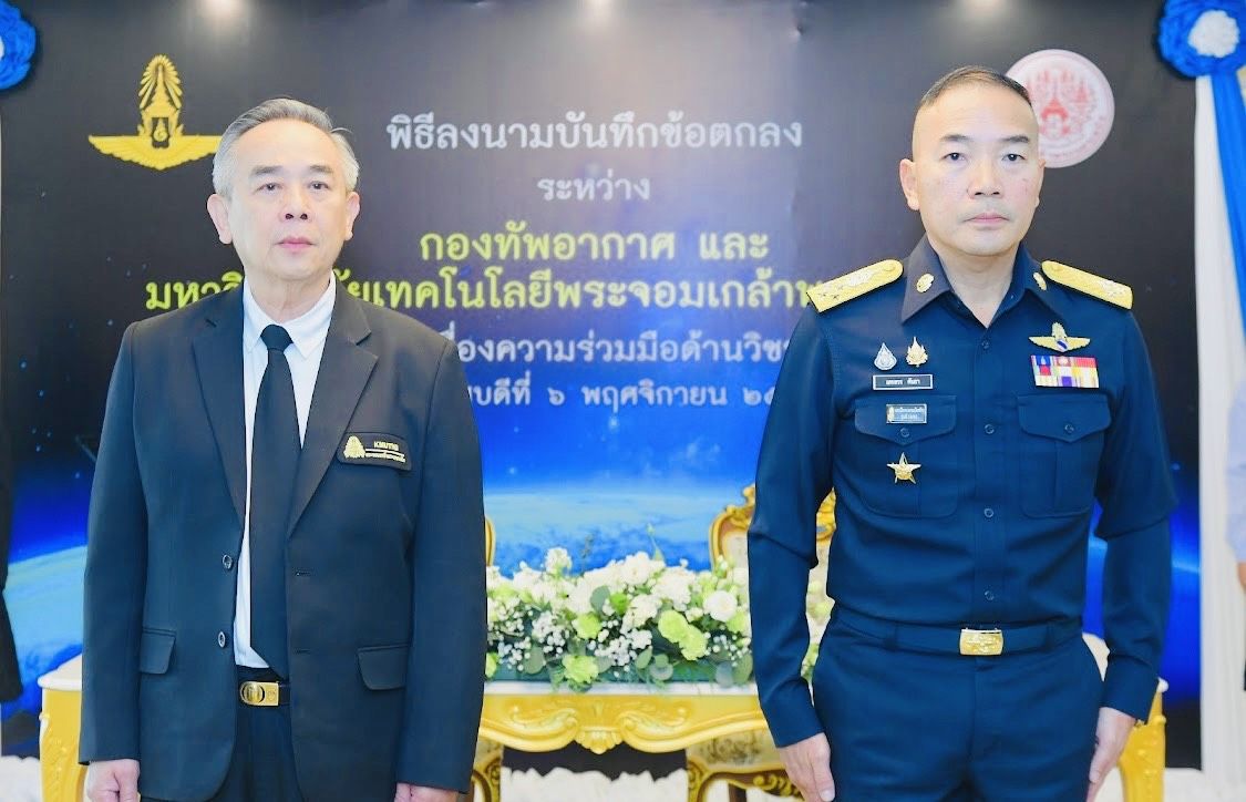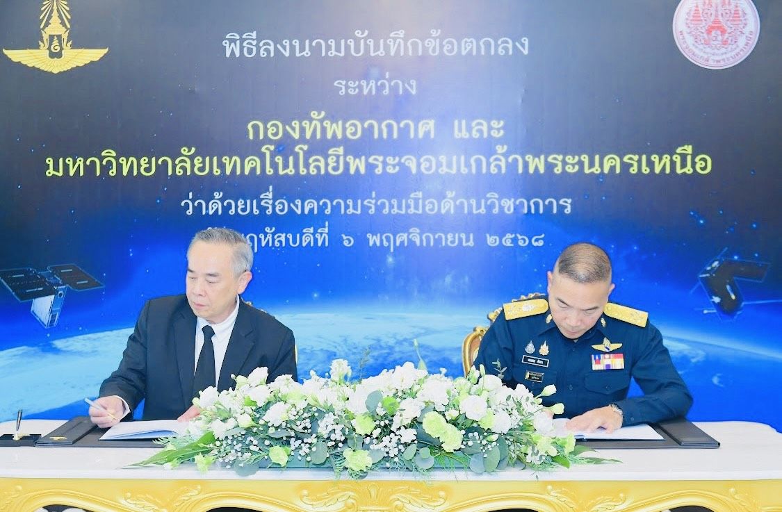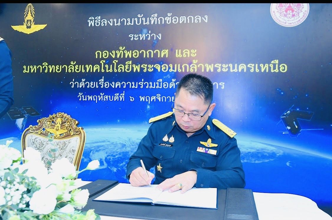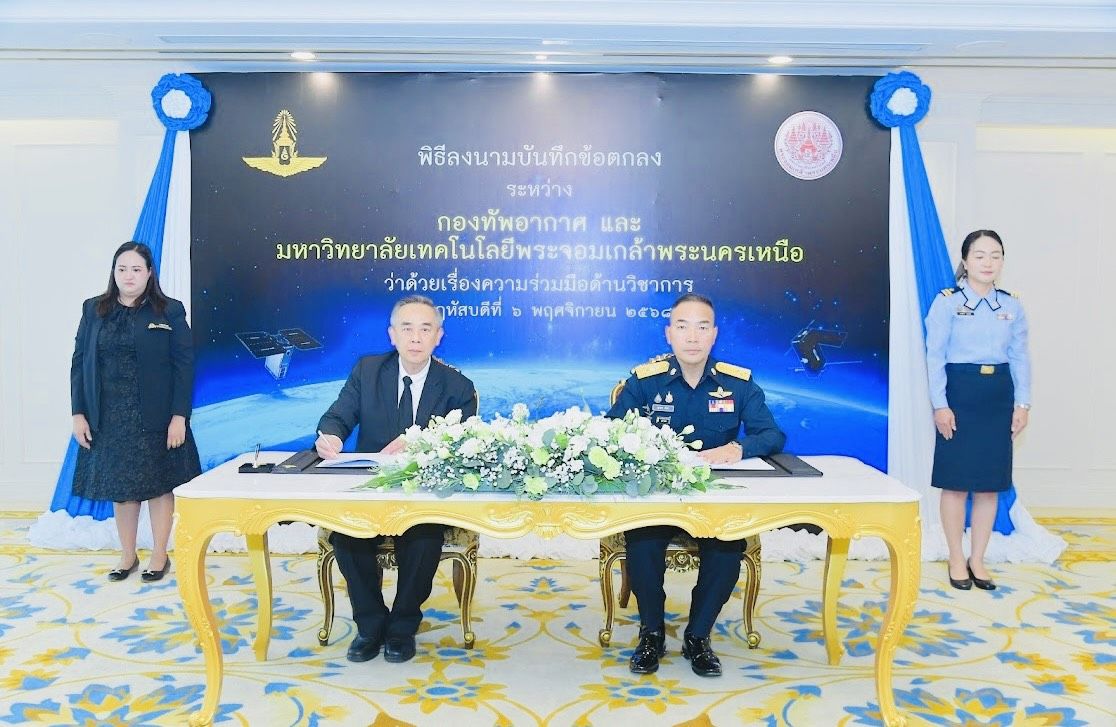 พลอากาศเอก เสกสรร คันธา ผู้บัญชาการทหารอากาศ พร้อมด้วย ศาสตราจารย์ ดร.ธานินทร์ ศิลป์จารุ อธิการบดีมหาวิทยาลัยเทคโนโลยีพระจอมเกล้าพระนครเหนือ ร่วมพิธีลงนามบันทึกข้อตกลงระหว่างกองทัพอากาศ กับ มหาวิทยาลัยเทคโนโลยีพระจอมเกล้าพระนครเหนือ ว่าด้วยความร่วมมือด้านวิชาการ โดยมีนายทหารชั้นผู้ใหญ่กองทัพอากาศ คณะผู้บริหารมหาวิทยาลัยเทคโนโลยีพระจอมเกล้าพระนครเหนือ และ พลอากาศโท ยุทธศักดิ์ พูลสุวรรณ เจ้ากรมยุทธศึกษาทหารอากาศ (ลงนามพยาน) และร่วมเป็นเกียรติในพิธี ณ ห้องรับรองบริพัตร กองบัญชาการกองทัพอากาศ เมื่อวันพฤหัสบดีที่ ๖ พฤศจิกายน ๒๕๖๘