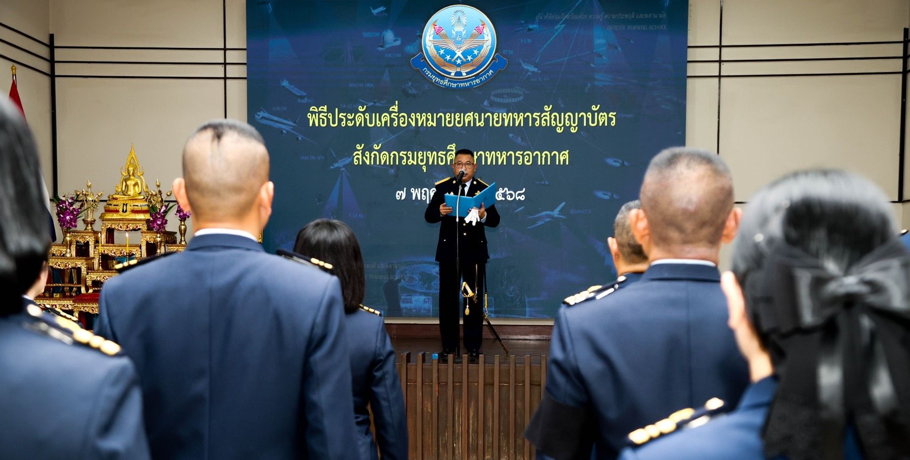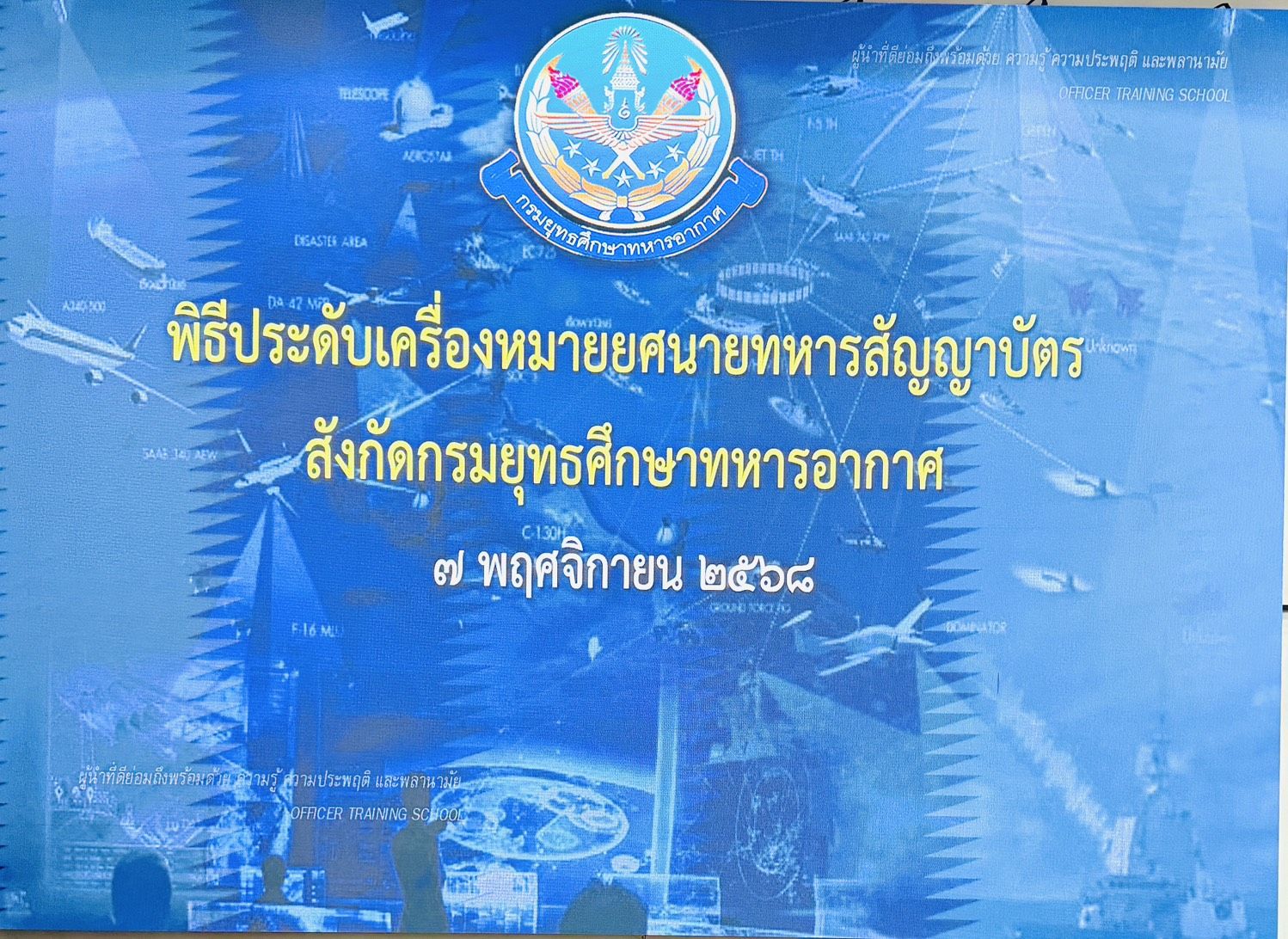 พลอากาศโท ยุทธศักดิ์ พูลสุวรรณ เจ้ากรมยุทธศึกษาทหารอากาศ เป็นประธานพิธีประดับเครื่องหมายยศ นายทหารชั้นสัญญาบัตร ที่ได้รับพระราชทานยศสูงขึ้น เพื่อเป็นสิริมงคล ขวัญกำลังใจ แก่ข้าราชการชั้นสัญญาบัตร กรมยุทธศึกษาทหารอากาศ พร้อมทั้งกล่าวแสดงความยินดีที่ได้รับพระราชทานยศสูงขึ้น การที่ได้รับเลื่อนยศนั้นย่อมแสดงให้เห็นว่าเป็นผู้ที่มีความรู้ ความสามารถ ตั้งใจปฏิบัติหน้าที่ด้วยความวิริยอุตสาหะ ซื่อสัตย์ สุจริต จึงได้มาซึ่งภาระหน้าที่ และความรับผิดชอบที่สูงขึ้น ขอให้รักษาคุณงามความดีนี้ไว้ และตั้งใจปฏิบัติหน้าที่ ที่ได้รับมอบหมายให้สำเร็จผลสมกับที่ผู้บังคับบัญชาไว้วางใจ เพื่อเป็นกำลังสำคัญในการร่วมกันพัฒนากรมยุทธศึกษาทหารอากาศ กองทัพอากาศ และประเทศชาติสืบไป เมื่อวันศุกร์ที่ ๗ พฤศจิกายน ๒๕๖๘ เวลา ๐๙๐๙ ณ ห้องบรรยายโรงเรียนนายทหารชั้นผู้บังคับหมวด กรมยุทธศึกษาทหารอากาศ