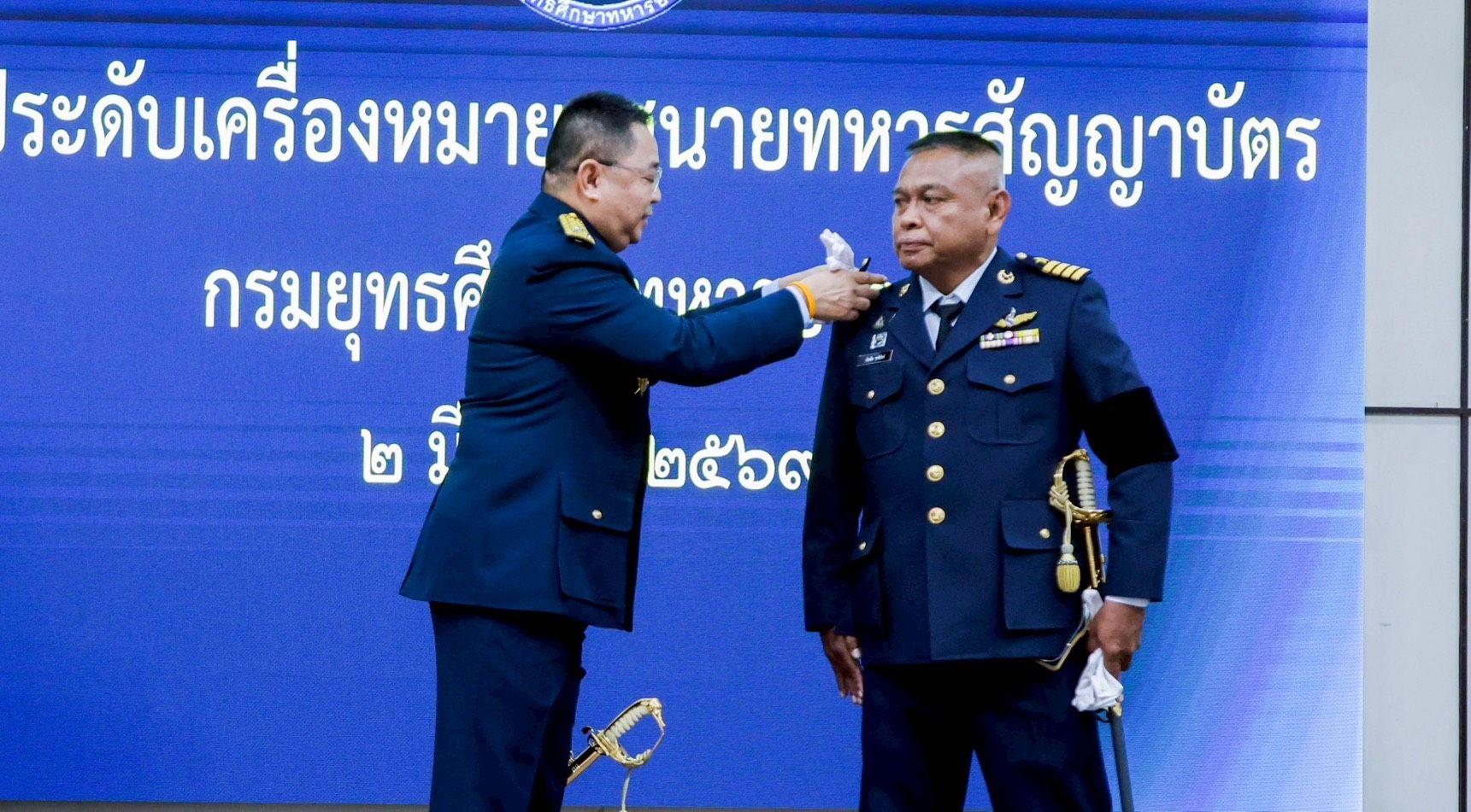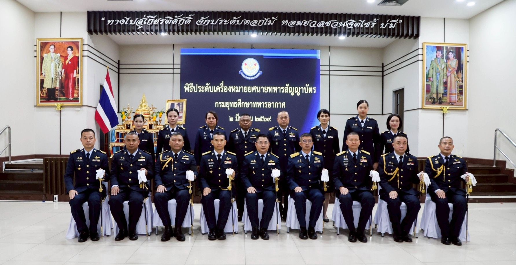 พลอากาศโท ยุทธศักดิ์ พูลสุวรรณ เจ้ากรมยุทธศึกษาทหารอากาศ เป็นประธานพิธีประดับเครื่องหมายยศนายทหารสัญญาบัตร การที่ได้รับการเลื่อนยศนั้นแสดงให้เห็นว่าท่านเป็นผู้มีความรู้ความสามารถตั้งใจปฏิบัติหน้าที่ด้วยความวิริยะอุตสาหะ ซื่อสัตย์ สุจริต และที่สำคัญคือ ได้รับความไว้วางใจจากผู้บังคับบัญชา จึงขอให้รักษาคุณงามความดีนี้ไว้ ตั้งใจปฏิบัติหน้าที่ที่ได้รับมอบหมายให้สำเร็จผลสมกับที่ผู้บังคับบัญชาไว้วางใจ เมื่อวันจันทร์ที่ ๒ มีนาคม ๒๕๖๙ ณ ห้องบรรยายโรงเรียนนายทหารชั้นผู้บังคับหมวด กรมยุทธศึกษาทหารอากาศ