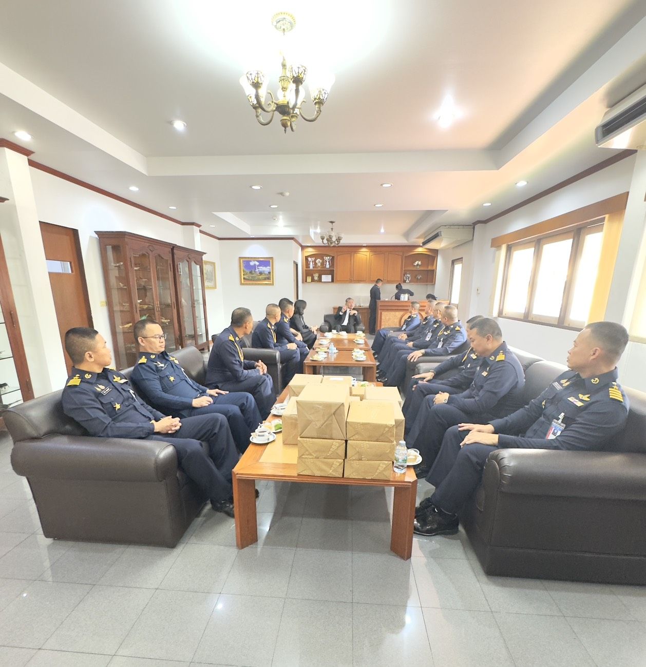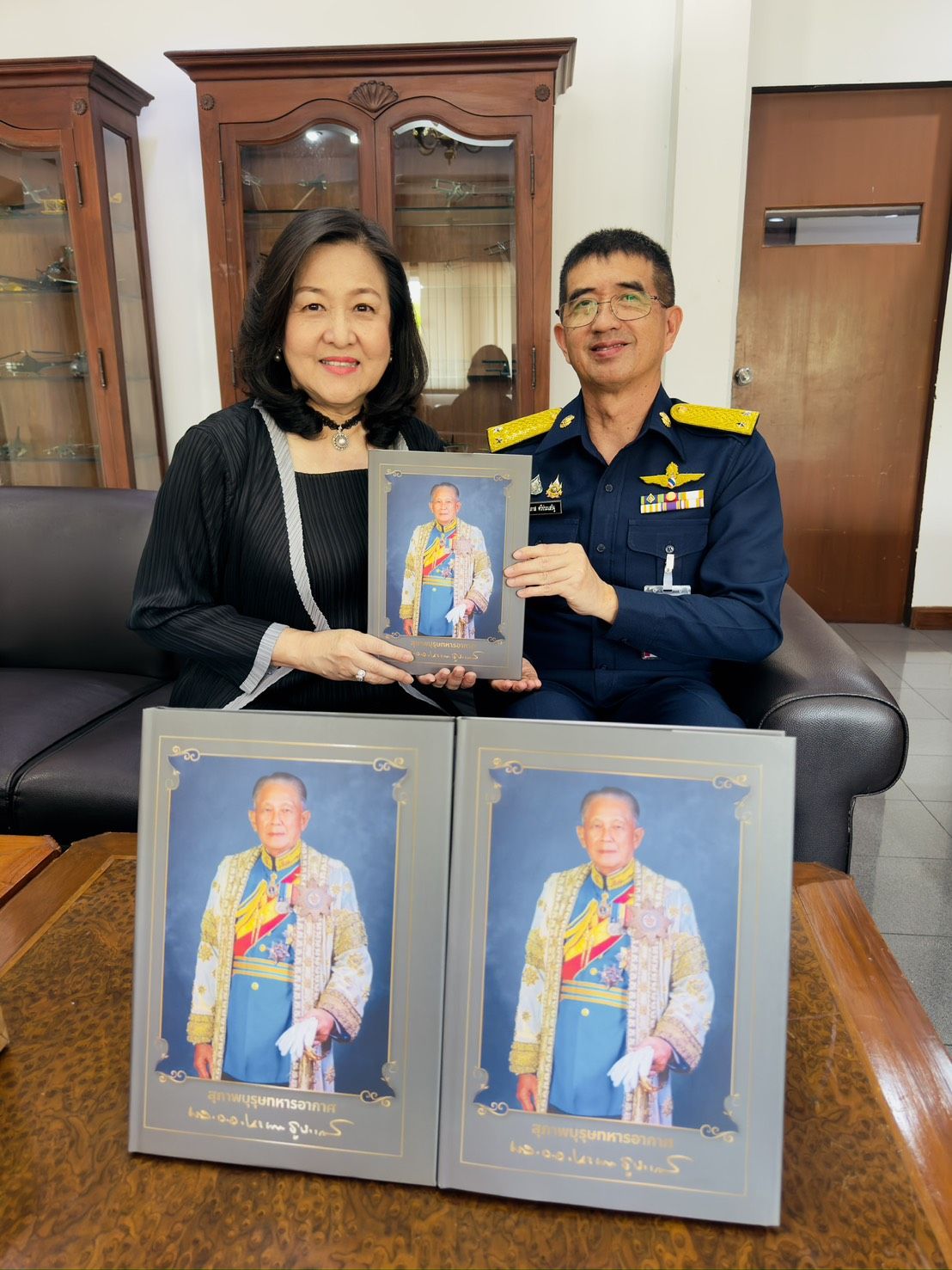 รอง จก.ยศ.ทอ.ให้การต้อนรับ พล.อ.อ.นภาเดช ธูปเตมีย์ และ พล.อ.ต.หญิง พันธ์นิดา ณ ลำปาง มอบหนังสือ (สุภาพบุรุษทหารอากาศ)