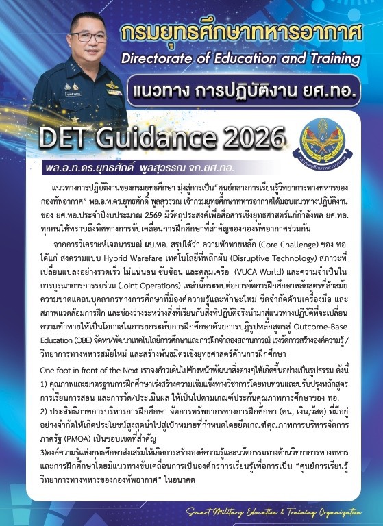 เมื่อวันพุธที่ ๗ มกราคม ๒๕๖๙ ณ ห้องบรรยายโรงเรียนนายทหารชั้นผู้บังคับฝูง กรมยุทธศึกษาทหารอากาศ