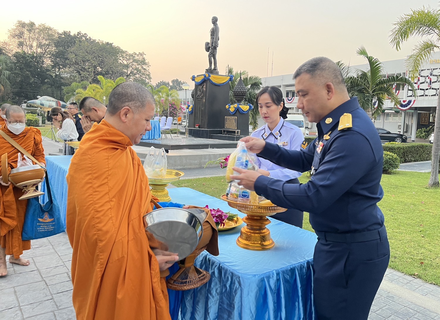 พลอากาศโท ยุทธศักดิ์ พูลสุวรรณ เจ้ากรมยุทธศึกษาทหารอากาศ พร้อมด้วยสมาคมคู่สมรส คณะผู้บังคับบัญชาข้าราชการ ลูกจ้าง พนักงานราชการ กรมยุทธศึกษาทหารอากาศ และผู้บังคับบัญชาหน่วยงานภายในกองทัพอากาศ ร่วมทำบุญใส่บาตรตอนเช้า ในวันพุธที่ ๑๔ มกราคม ๒๕๖๙ เวลา ๐๖๔๙ ณ บริเวณลานด้านหน้าอนุสาวรีย์จอมพลสมเด็จพระเจ้าบรมวงศ์เธอ เจ้าฟ้าจักรพงษ์ภูวนารถ กรมหลวงพิศณุโลกประชานารถ พระบิดากองทัพอากาศไทย