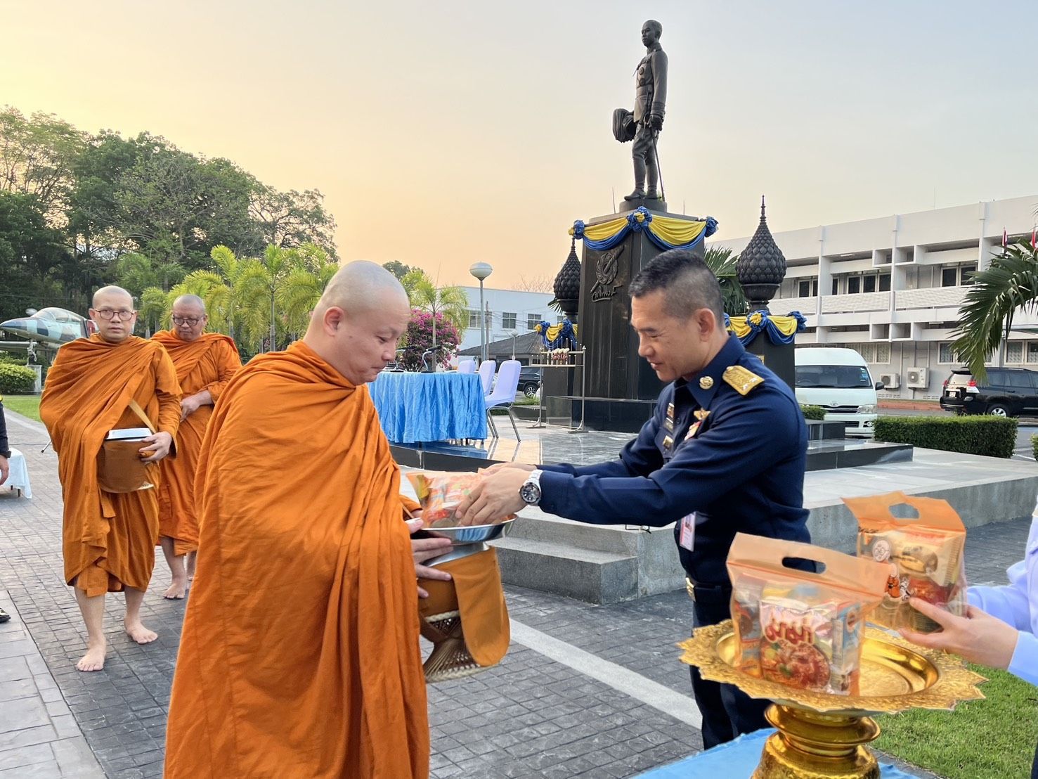พลอากาศตรี พฤทธิ์ ตึกสุอินทร์ รองเจ้ากรมยุทธศึกษาทหารอากาศ (สายงานบริหาร) พร้อมด้วย คณะผู้บังคับบัญชา, ข้าราชการ, ลูกจ้าง และพนักงานราชการ กรมยุทธศึกษาทหารอากาศ และผู้บังคับบัญชาหน่วยงานภายในกองทัพอากาศ ร่วมทำบุญใส่บาตรตอนเช้า ในวันพุธที่ ๔ มีนาคม ๒๕๖๙ เวลา ๐๖๔๙ ณ บริเวณลานด้านหน้าอนุสาวรีย์จอมพลสมเด็จพระเจ้าบรมวงศ์เธอ เจ้าฟ้าจักรพงษ์ภูวนารถ กรมหลวงพิศณุโลกประชานารถ พระบิดากองทัพอากาศไทย